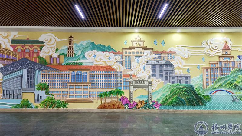裴一凡始终心系母校梧州学院,当母校邀请她为校园创作壁画时,她欣然应允,希望借此机会回馈母校的培育之恩。裴一凡及其团队精心打造的《梧院·寻梦》浮雕壁画,位于学校明理楼一楼,长达12.6米,高3.8米,约49平方米。这幅壁画以“平行蒙太奇”的手法串联起梧州学院的百年历史,将学校和梧州市的人文风貌、建筑特色等元素巧妙融入其中。他们对壁画的每一处线条、每一抹色彩都精雕细琢,按精确比例设计,采用多层次表现手法,使壁画在光影变化中生动展现梧州学院的故事。《梧院·寻梦》壁画不仅是一件艺术精品,更是裴一凡对母校深情厚谊的寄托,它丰富了校园文化内涵,增强了师生的爱校之情,成为校园文化的重要标识。这一创作过程,体现了学校培养学生感恩情怀和社会责任感的教育成果,也展示了校友与母校之间紧密的情感纽带和文化传承关系。