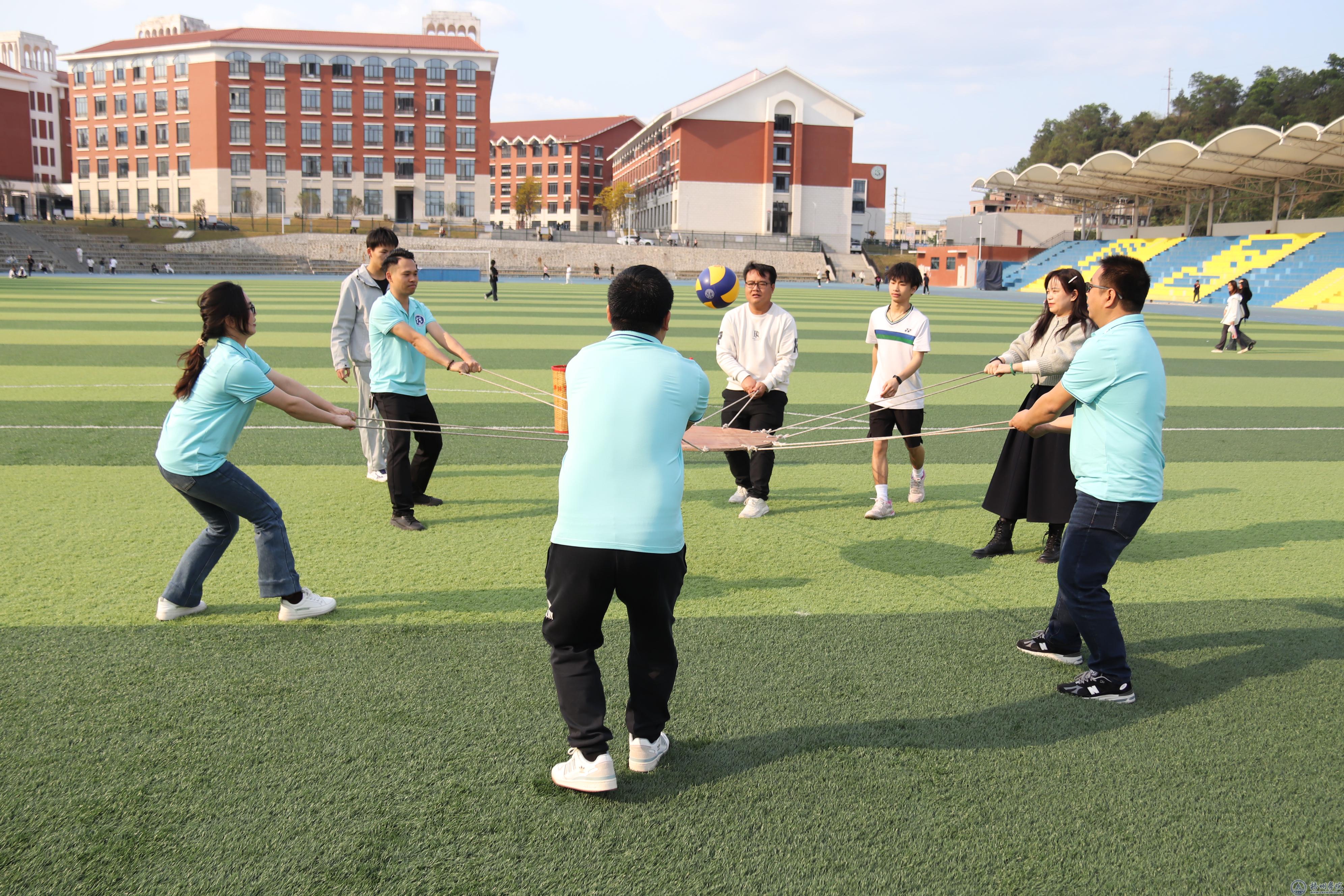 随后,全体人员前往北区田径场开展趣味运动。抛绣球、同心颠球等团队协作项目有效活跃现场氛围,校友与师生在互动中增进情感联结。活动期间,莫晨宇向校友介绍了学校近年发展情况,并邀请校友为学校高质量发展建言献策。