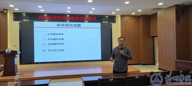 3月24日下午,宁波大学教授、博士生导师钟昌标到我校做“科研选题与科学素养培育”的学术讲座。讲座在明科楼一楼学术报告厅举行,经济学院全体教师和对人文社科研究感兴趣的教师代表参加会议。会议由经济学院梁文光副院长主持。