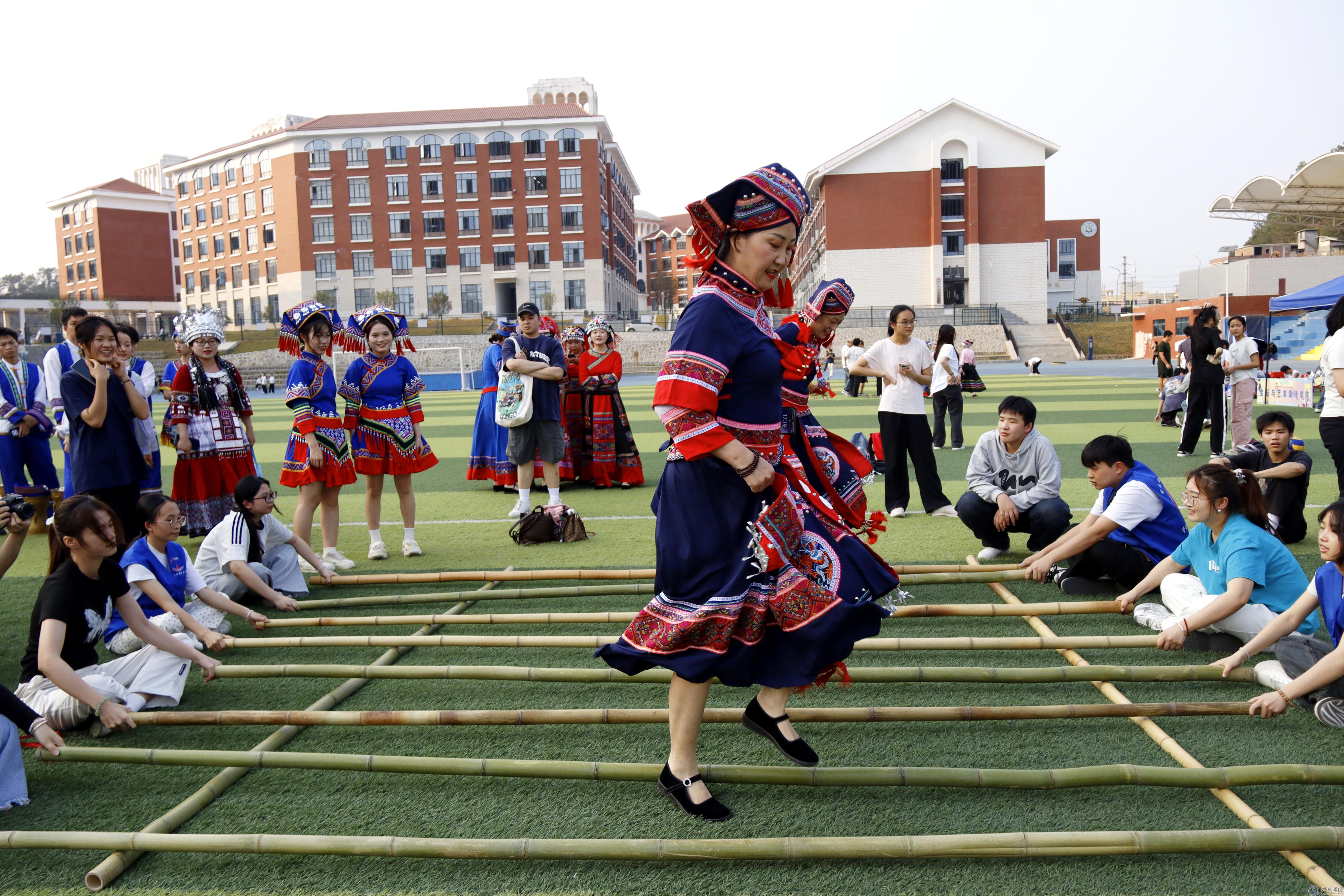 此次活动内容包括民族传统运动体验、民族团结知识有奖问答、各民族服饰展、民族歌舞表演、民族文化体验等系列环节。活动期间,各民族师生一起身着民族传统服饰载歌载舞,品鉴六堡茶与美食,感受非遗技艺的独特魅力,共同参与同心板鞋、背篓接绣球、踢毽子、传统投壶、手绘传统纹样、知识问答等活动,享受了一场精彩的民族文化盛宴。