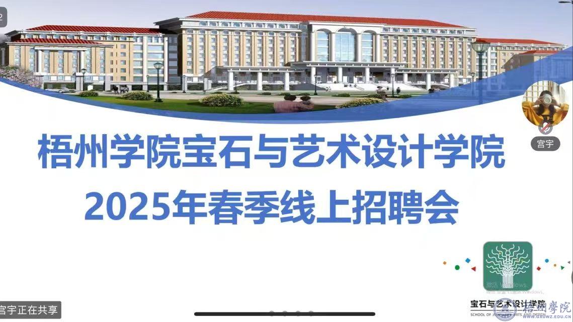 4月2日,宝石与艺术设计学院成功举办了2025年春季线上招聘会,本次招聘会通过“直播推介+云端互动”的创新模式,吸引了来自梧州、肇庆、柳州等地的10余家企业参与,提供涵盖珠宝设计、服装设计、电商平台等领域的岗位80余个。