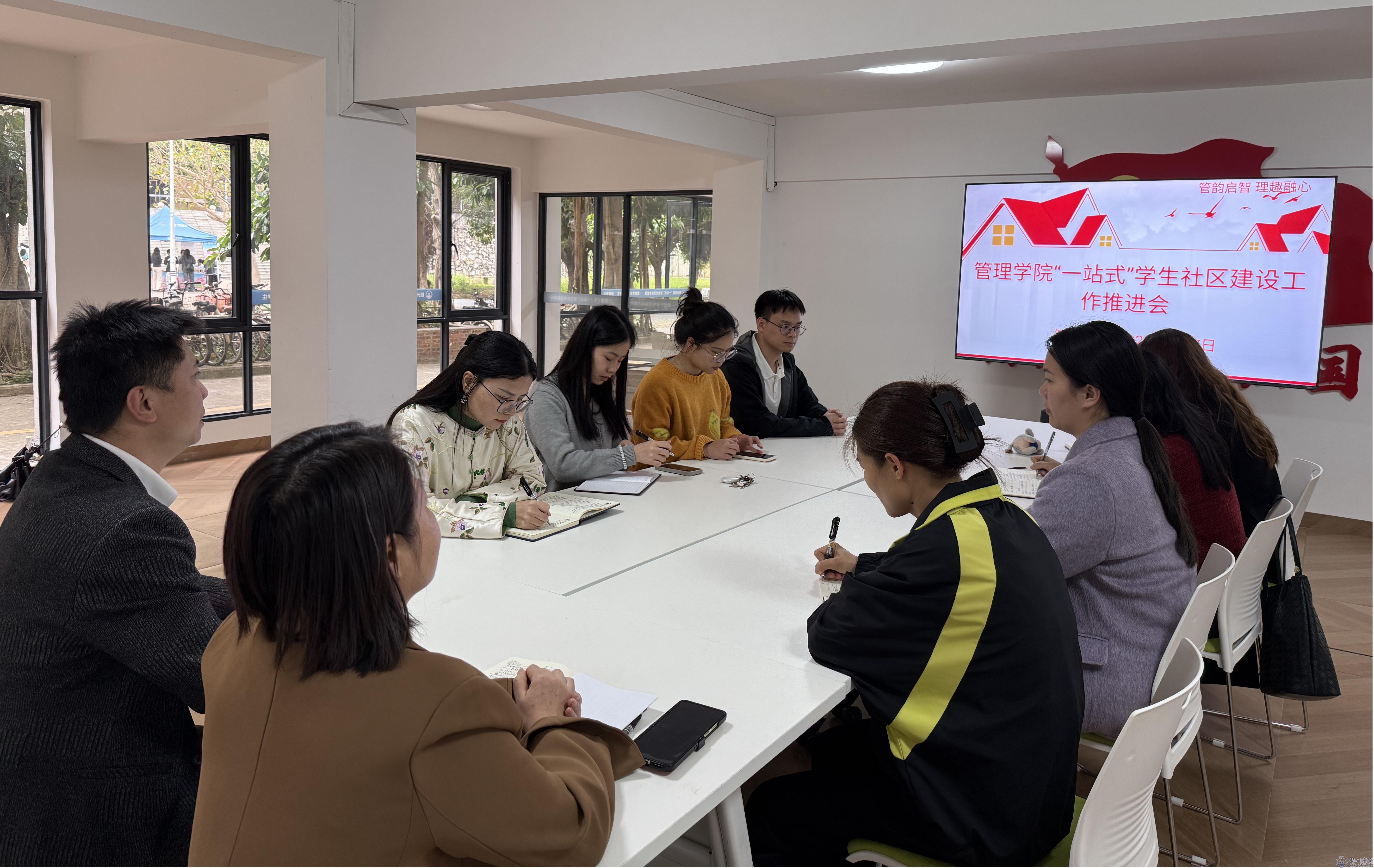 为进一步推进“一站式”学生社区建设,提升学生管理与服务水平,4月7日,管理学院在“管韵理趣”社区服务中心召开社区建设工作推进会。学院党委书记冀宁、党委副书记陈兴、全体辅导员参加此次会议。