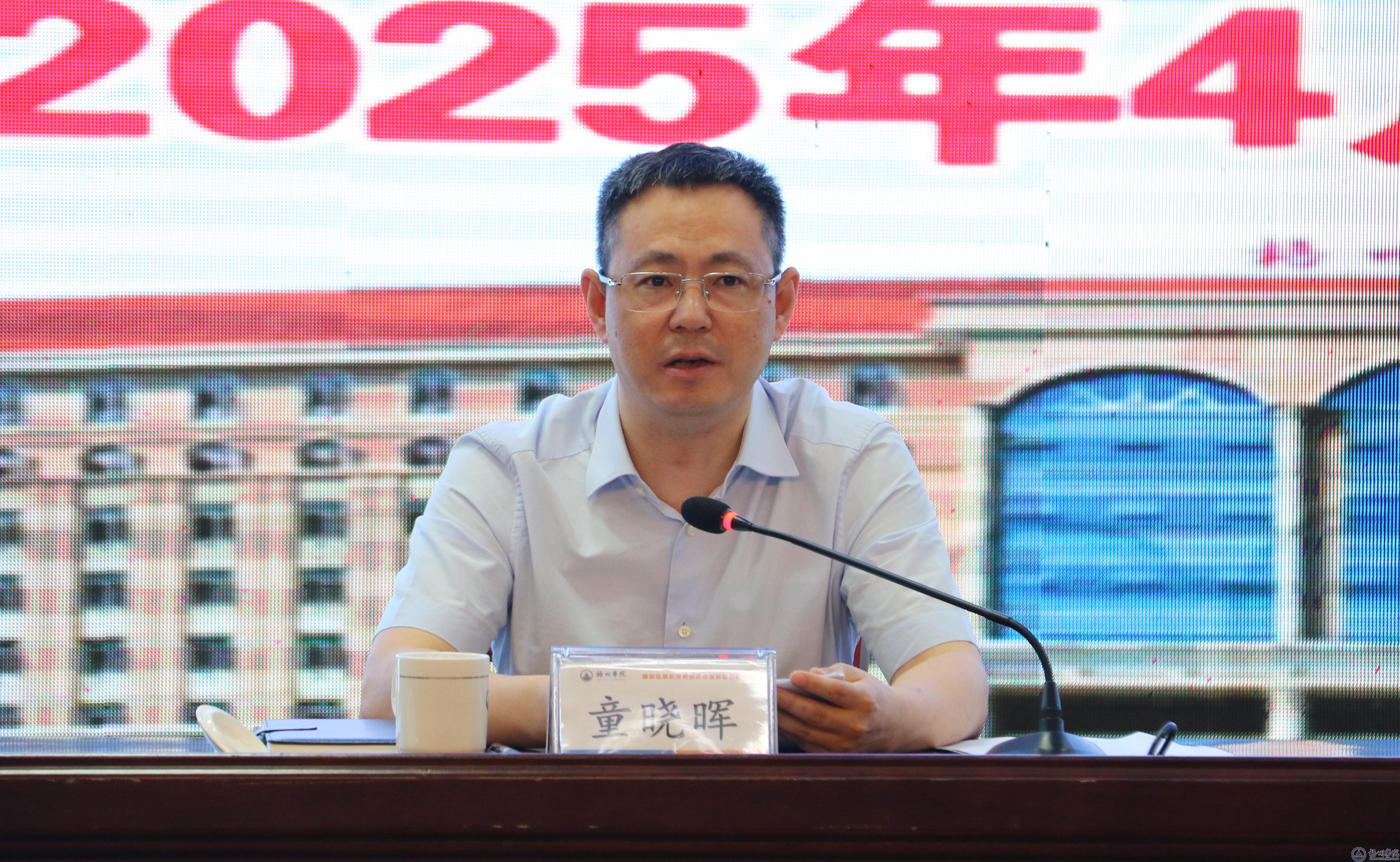 学校党委书记童晓晖代表学校党委、行政,向现任全体中层干部的辛勤付出致以诚挚感谢。他强调,今年作为贯彻全国教育大会精神、落实《教育强国建设规划纲要(2024 - 2035 年)》的关键之年,处于“十四五”规划收官与“十五五” 规划谋划的重要节点,也是学校推进硕士学位授予单位申报、迎接本科教育教学审核评估、开展重点领域改革等高质量发展核心任务的奋进阶段,在此背景下开展中层干部集中调整工作意义重大。对于做好本次中层干部集中调整工作,童晓晖书记提出了三点意见:一是要统一思想认识,着眼未来发展,深刻领会理解此次干部集中调整工作的重要意义。开展中层干部集中调整是推动学校事业高质量发展、实现战略目标任务的重要保障;是推进干部队伍系统性重塑、加强干部队伍建设的内在要求;是推进学校治理体系和治理能力现代化的重要举措。二是要提高政治站位,树立正确导向,认真把握此次集中调整工作的标准要求。要坚持党管干部、组织定人的原则;要强化注重实绩、事业为上的导向;要树立能上能下、选贤举能的风尚;严守组织纪律要求。三是要强化使命担当,勇于创新突破,打造一支特别能战斗的梧院铁军。要强化机遇意识;要强化创新思维;要强化资源观念;要保持良好心态;要深化履职尽责。童晓晖书记强调,干部集中调整工作已经全面启动,我们必须上下协作,通力配合,整体推进,以高度的政治责任感和历史使命感,自觉把思想和行动统一到党委的决策部署上来,全力投入、积极支持中层干部集中调整工作,选拔配备一支忠诚干净担当、堪当学校高水平发展建设重任的中层干部队伍,为推进区域特色鲜明的高水平应用型大学建设作出应有贡献。