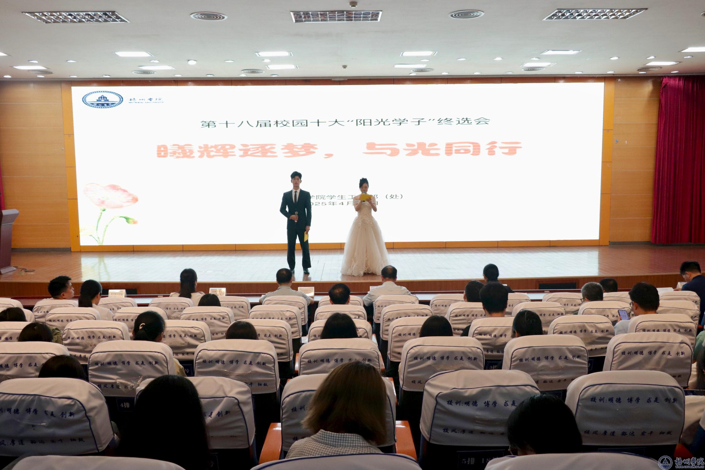 4月24日晚,学校在明理楼一楼学术报告厅举办第十八届校园十大“阳光学子”终选会。学校党委副书记梁业华出席活动,学生工作部(处)负责人,各二级学院分管学生工作负责人、学工办主任,心理中心全体老师及各二级学院学生代表参加活动。本次活动由学生工作部(处)主办。