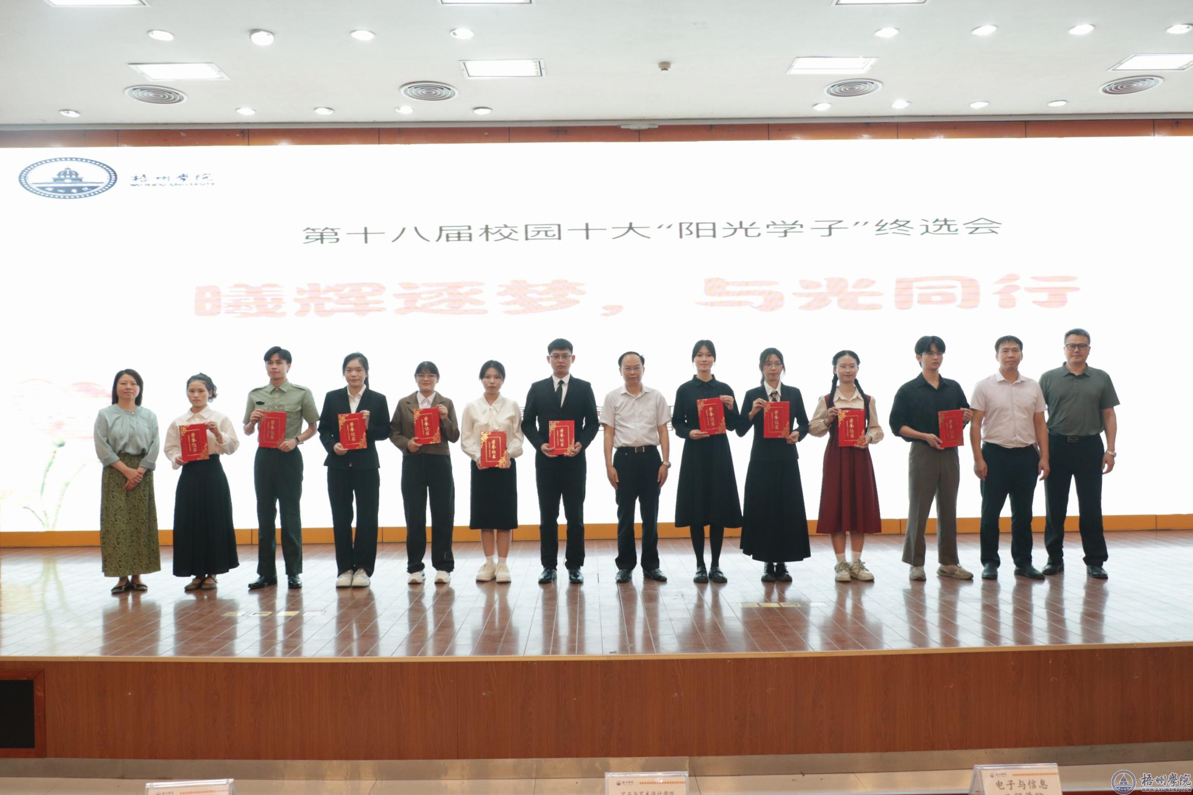 学校党委副书记梁业华为荣获十大“阳光学子”选手颁奖