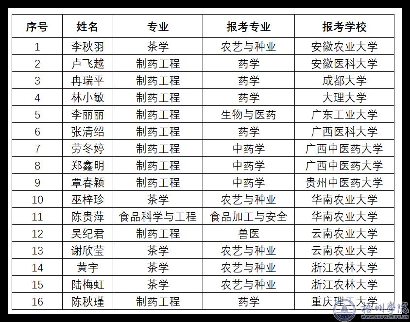 近日知悉,食品与制药工程学院2025届毕业生考研再创佳绩,16名学子成功考取硕士研究生,录取人数较去年增加1人,刷新历史纪录。
