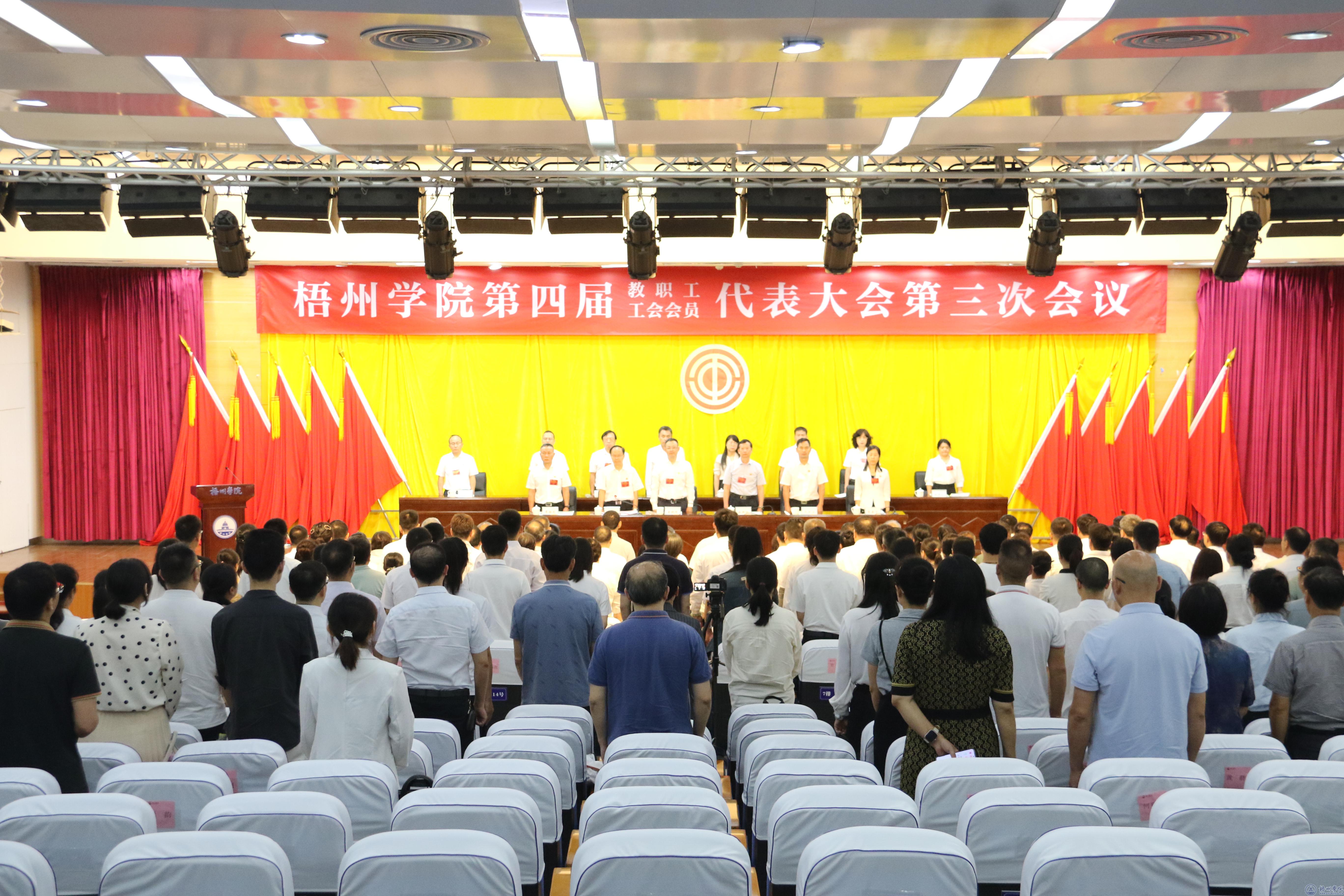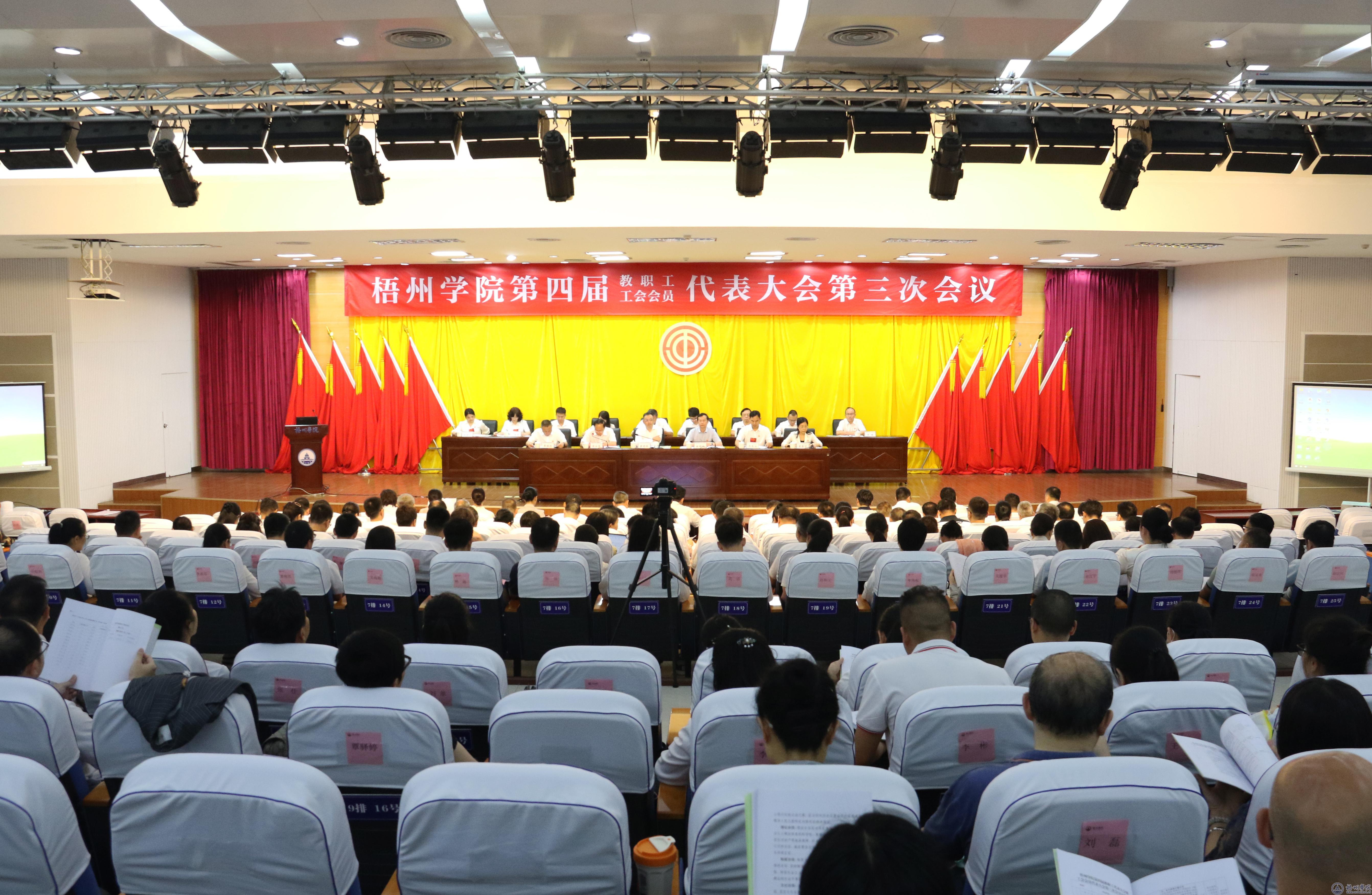 上午11时35分,举行会议闭幕式,闭幕式由学校党委副书记梁业华主持。会议表决通过《2025年校长工作报告》《梧州学院2024年度财务决算和2025年度预算报告》《梧州学院工会2024年工作报告》《梧州学院关于绩效工资分配方案修订的指导性意见》的决议。