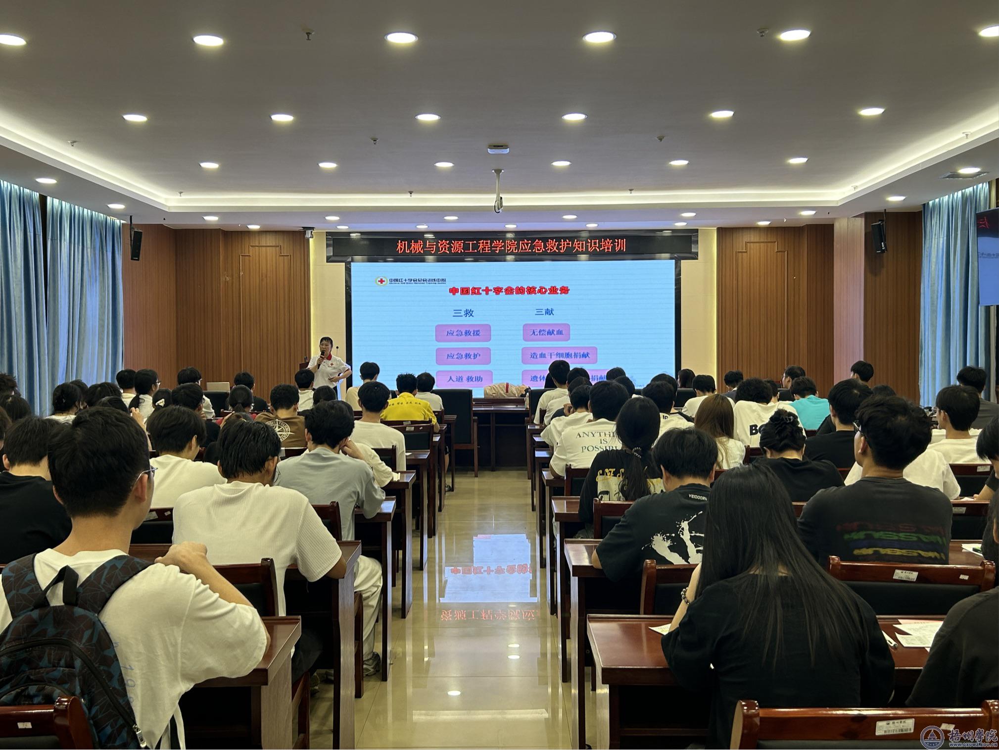5月8日晚上,机械与资源工程学院联合梧州市红十字会在科技楼一楼会议室开展心肺复苏与自动体外除颤器(AED)使用应急救护知识培训,学院全体辅导员及各年级学生代表130人参会学习。