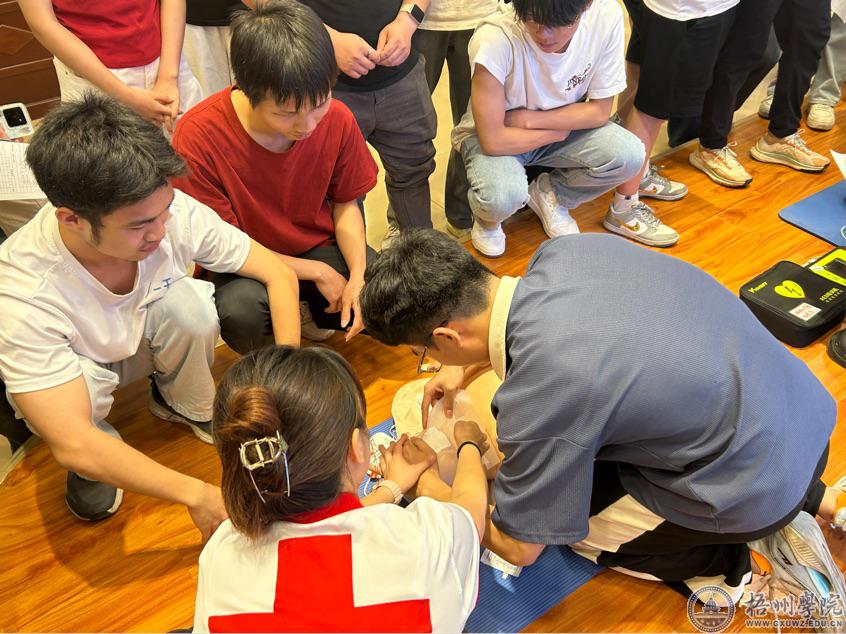 培训现场,梧州市红十字会的专家及医生结合近年来校园突发疾病案例,以通俗易懂的语言讲解心肺复苏的操作流程和黄金救援时间,配合视频演示和现场实操介绍,重点强调自动体外除颤器(AED)作为“救命神器”在心脏骤停急救中的关键作用以及“尽早除颤”对挽救生命的重要意义。