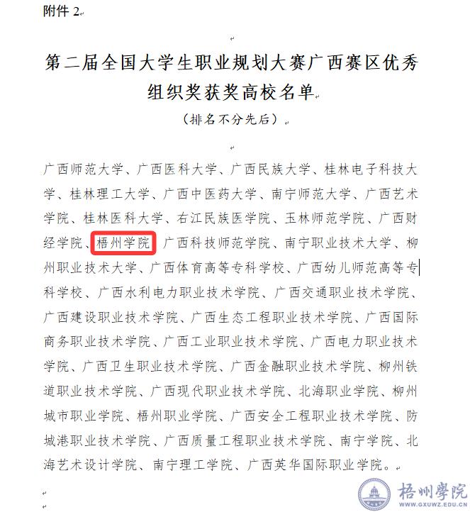 3月1日至2日,由广西壮族自治区教育厅指导、广西高校毕业生就业创业指导中心主办,广西民族大学承办的第二届全国大学生职业规划大赛广西区赛总决赛满落下帷幕。我校凭借出色的组织工作和优异的参赛成绩,荣获“优秀组织奖”,是全区15所获此殊荣的本科院校之一。