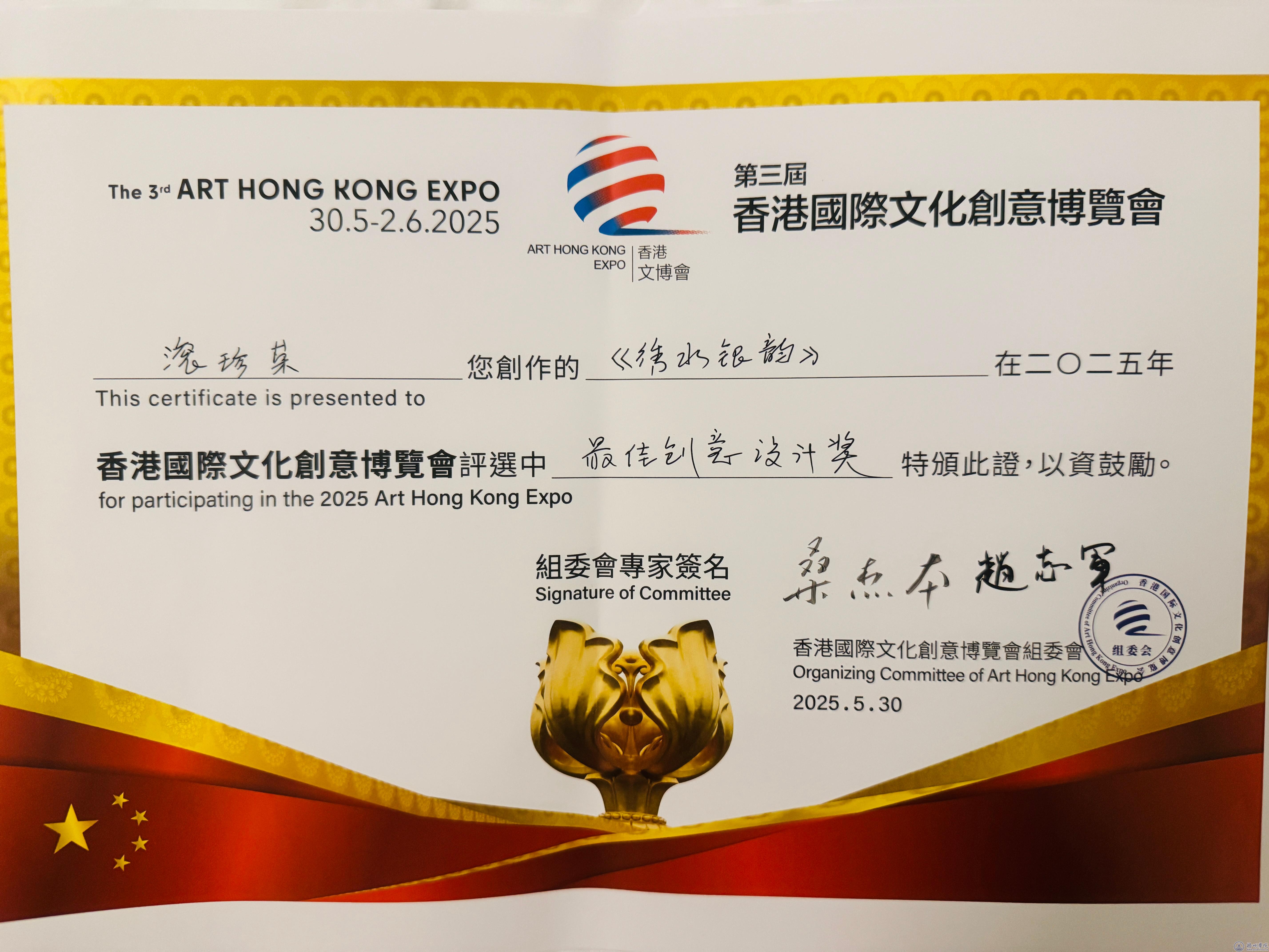 5月30日至6月2日,我校文学与传媒学院教师徐璐带领团队赴港参展,展出多件由宝石与艺术学院学生设计的优秀作品。其中,《隔窗听竹》《绣水银韵》《书韵琴弦》荣获“最佳创意设计奖”。此次获奖不仅体现我校学子扎实的专业功底与巧妙的创意技巧,更彰显我校服务地方特色产业的育人成果和创新实践。