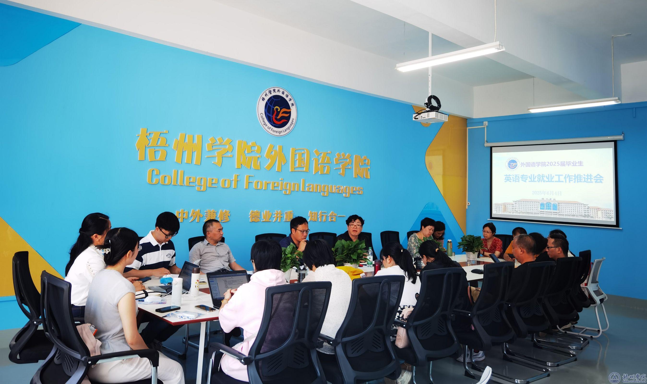 6月4日下午,外国语学院在北区实训楼二楼M-201会议室召开2025届毕业生就业工作第三次推进会。学院领导班子、各专业指导老师、毕业生辅导员班主任参加了会议。