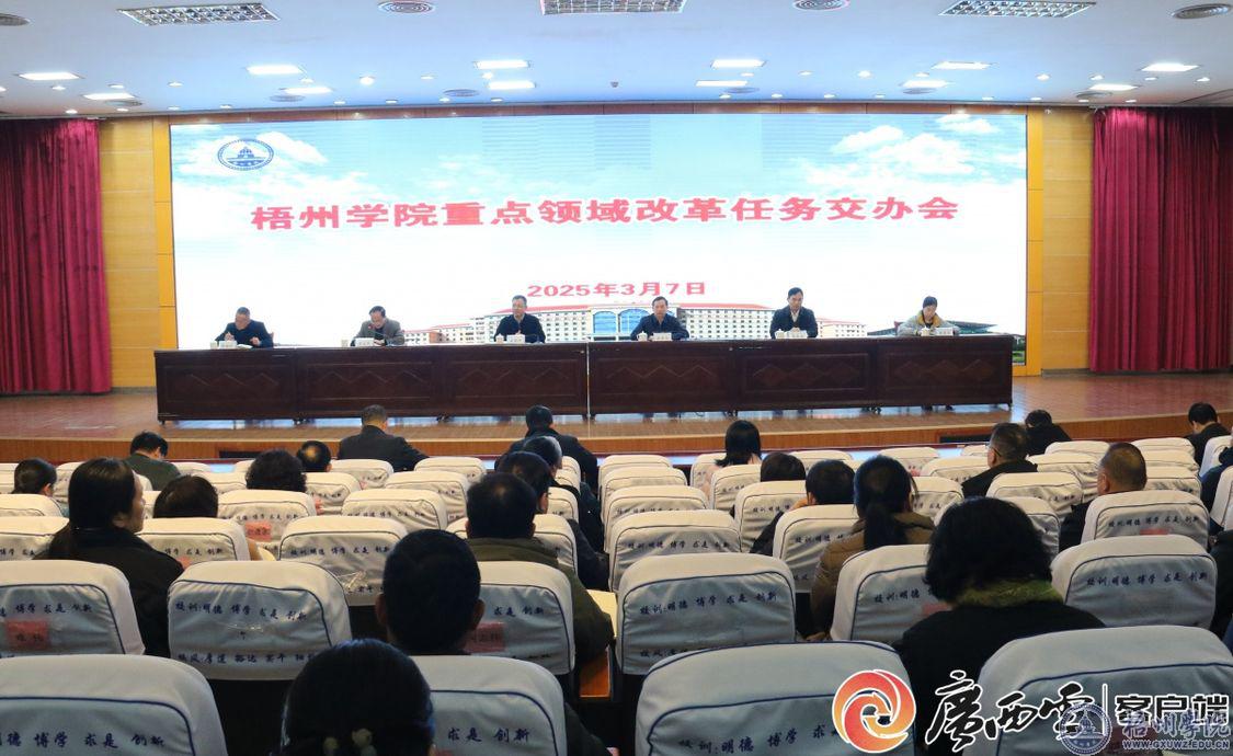 “挂图作战”强化“马上办、立马干”。学校重点领域改革工作是今年的重点工作,聚焦在6个重点领域实施8项专项行动,破解改革与发展中的41个关键性问题,形成47个举措的改革方案。全体学校领导身体力行、以上率下、发挥头雁效应,根据工作分工,每人负责牵头一个重点领域改革,落实责任部门、责任人,定人定责、销号管理。今年年初,学校召开重点领域改革任务交办会,责任校领导向8个牵头单位负责人颁发交办单,明确工作任务、措施、完成时限。随后,“梧州学院重点领域改革工作月度推进表”通过大幅图表上墙的方式醒目地树立在明理楼八楼中厅,实时向全校师生展示工作推进的速度及成效,随时接受全校师生的监督与鞭策。每完成一个工作任务就贴上一面小红旗,把“推进表”变成“计程表”,做到任务清、责任清、措施清、进度清,以比学赶超、奋勇争先的工作作风推动各项改革任务高效开展,形成“头雁领航,群雁齐飞”凝心聚力干事创业的良好局面。
