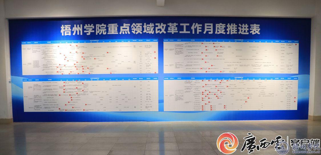 挂图作战,学校在明理楼八楼公布重点领域改革工作月度推进表。