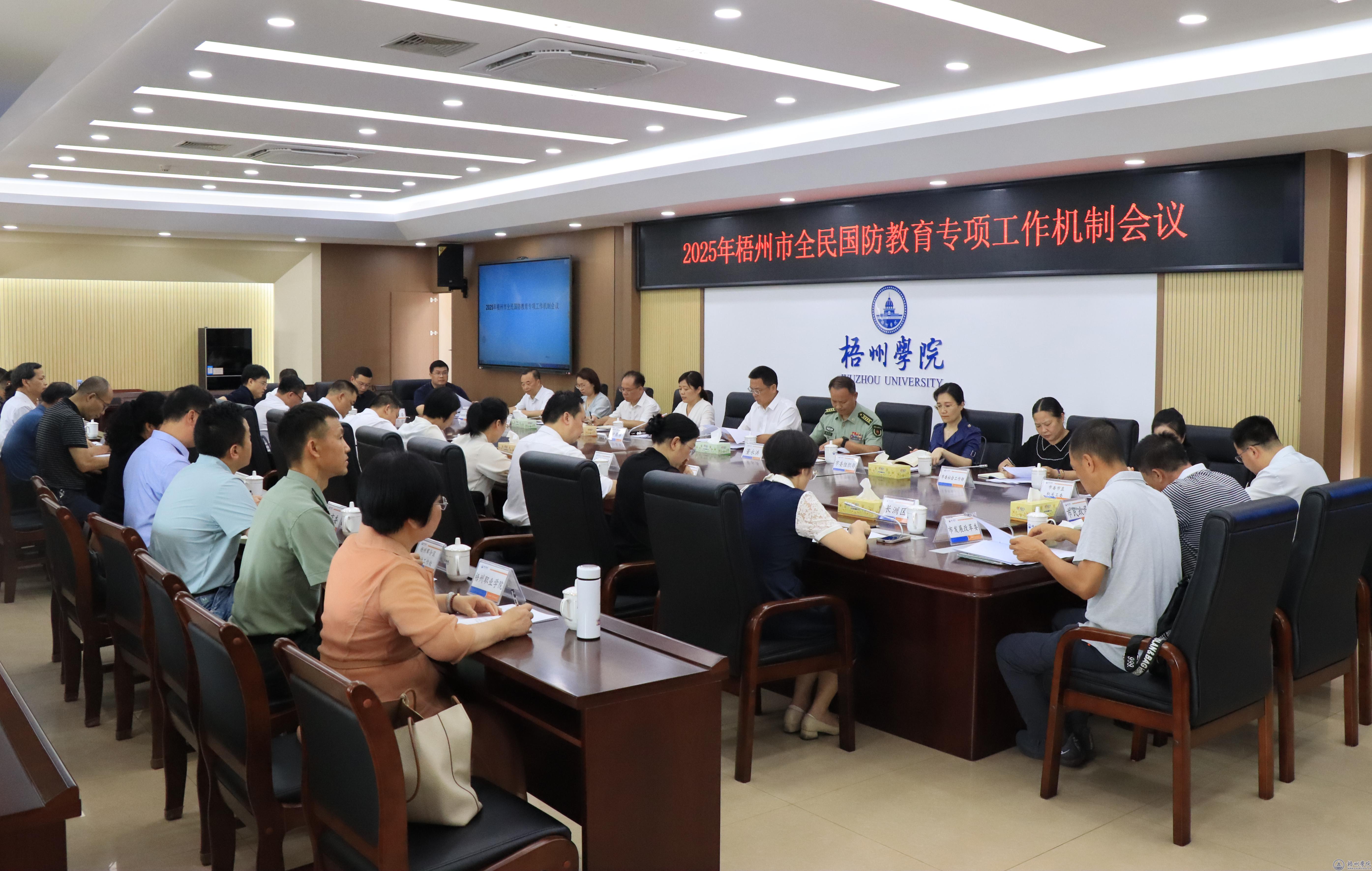 6月6日上午,2025年梧州市全民国防教育专项工作机制会议在我校明理楼八楼第一会议室召开。梧州市委常委、宣传部部长黄恩,梧州军分区大校副司令员董永洪出席会议。梧州市全民国防教育专项工作机制各成员单位分管负责同志,各县市区党委宣传部部长,以及部分区直、市区部门分管领导参加会议。