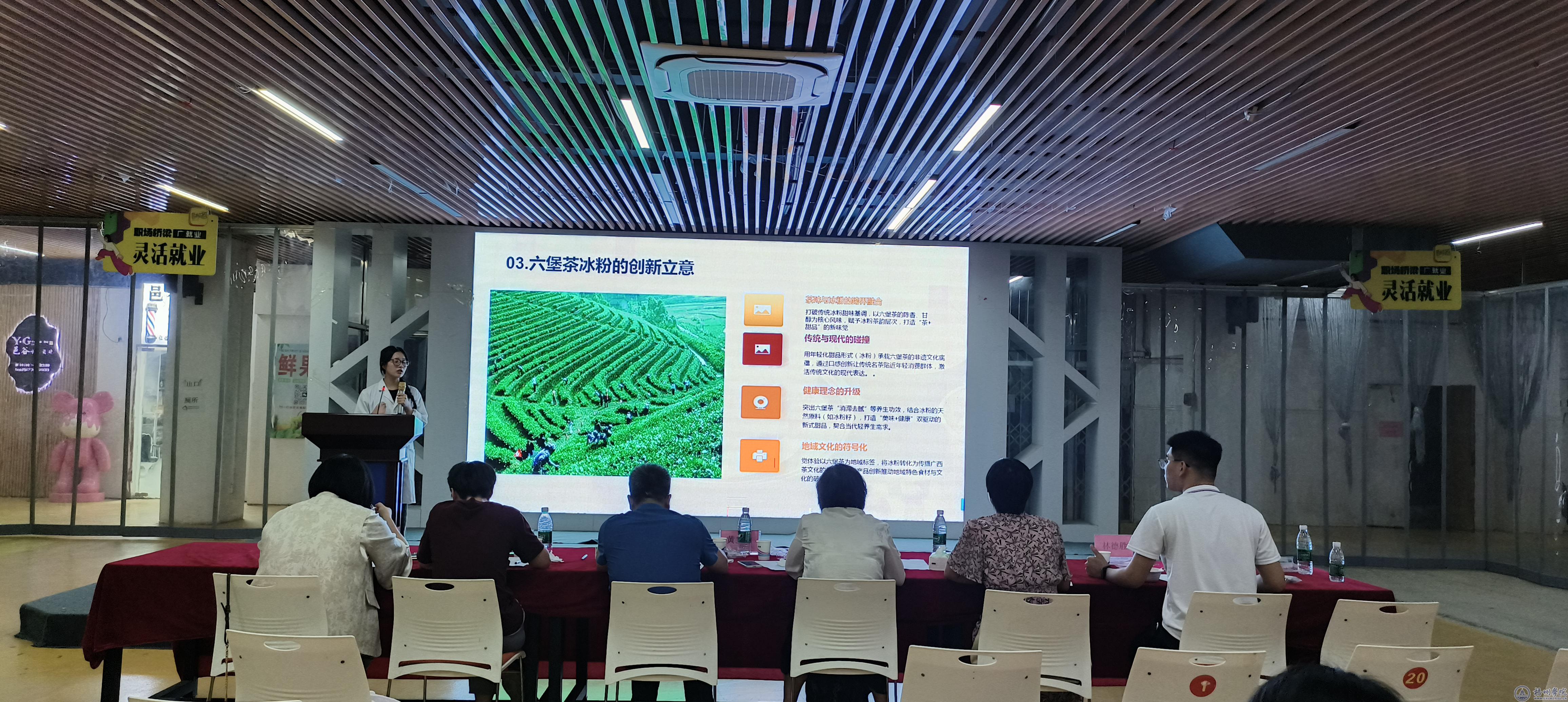 决赛中,各团队聚焦梧州六堡茶,全面展示六堡茶在烘焙、饮品、零食等多元食品领域的创新应用。经评委现场品评与综合评审,“六堡茶冰粉”团队以清爽口感、创新设计、成本可控及市场潜力突出,斩获一等奖。