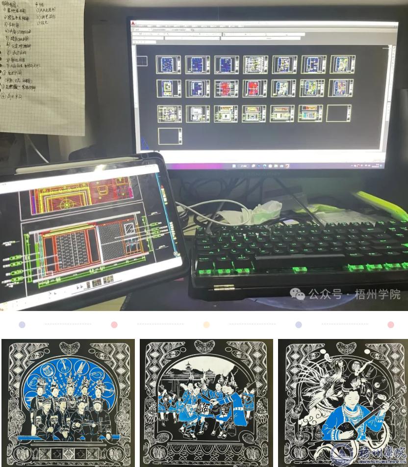 她坚信“理论是基石,设计需感性理性融合”。筑牢理论基础,实践调研联系理论,双向促进,大胆创意。在一次主题以三江侗族文化为方向的作业中,她进行实地调研、挖掘文化,反复构思后以侗族婚嫁文化为主题,借鉴插画风格,融入特色元素,以蜡染形式呈现作品。她的作品不仅取得了高分,更重要的是,这次的设计过程为她后续的比赛作品带来了启发。