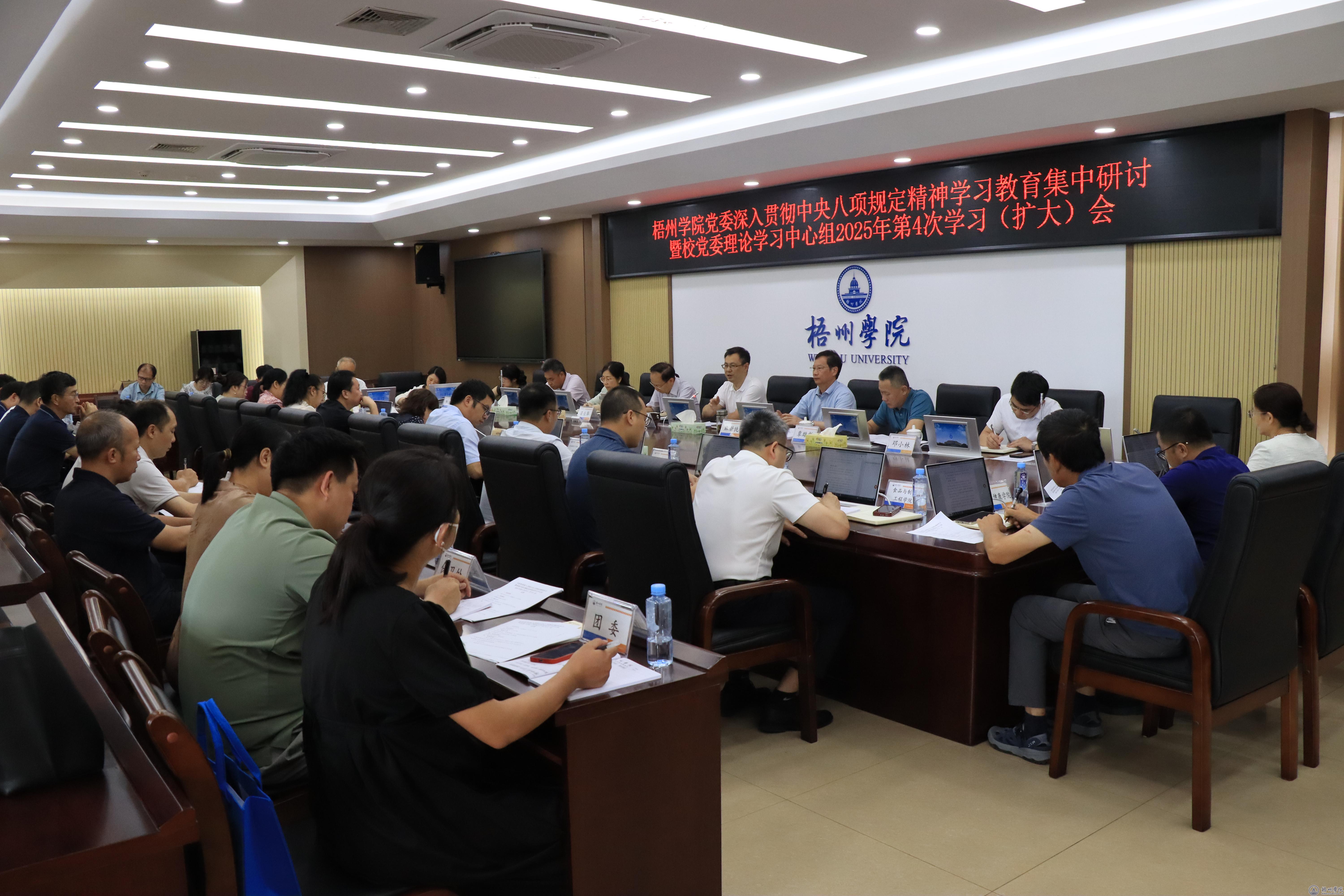 6月12日上午,学校党委在明理楼8楼第1会议室召开深入贯彻中央八项规定精神学习教育集中研讨暨校党委理论学习中心组2025年第4次学习(扩大)会,深入学习领会习近平总书记关于加强党的作风建设的重要论述和在河南等地考察时重要讲话精神,传达学习自治区党委书记陈刚在自治区深入贯彻中央八项规定精神学习教育警示教育大会上的讲话精神,学习《党的十八大以来深入贯彻中央八项规定精神的成效和经验》等文件精神,学习贯彻落实党中央和自治区关于集中整治违规吃喝的部署要求,以近期中央和自治区通报的典型案例为镜鉴,以案说纪、以案说法、以案说责,进一步加强和改进干部作风建设。学校党委书记童晓晖主持会议并讲话,学校党委理论学习中心组成员作交流发言。