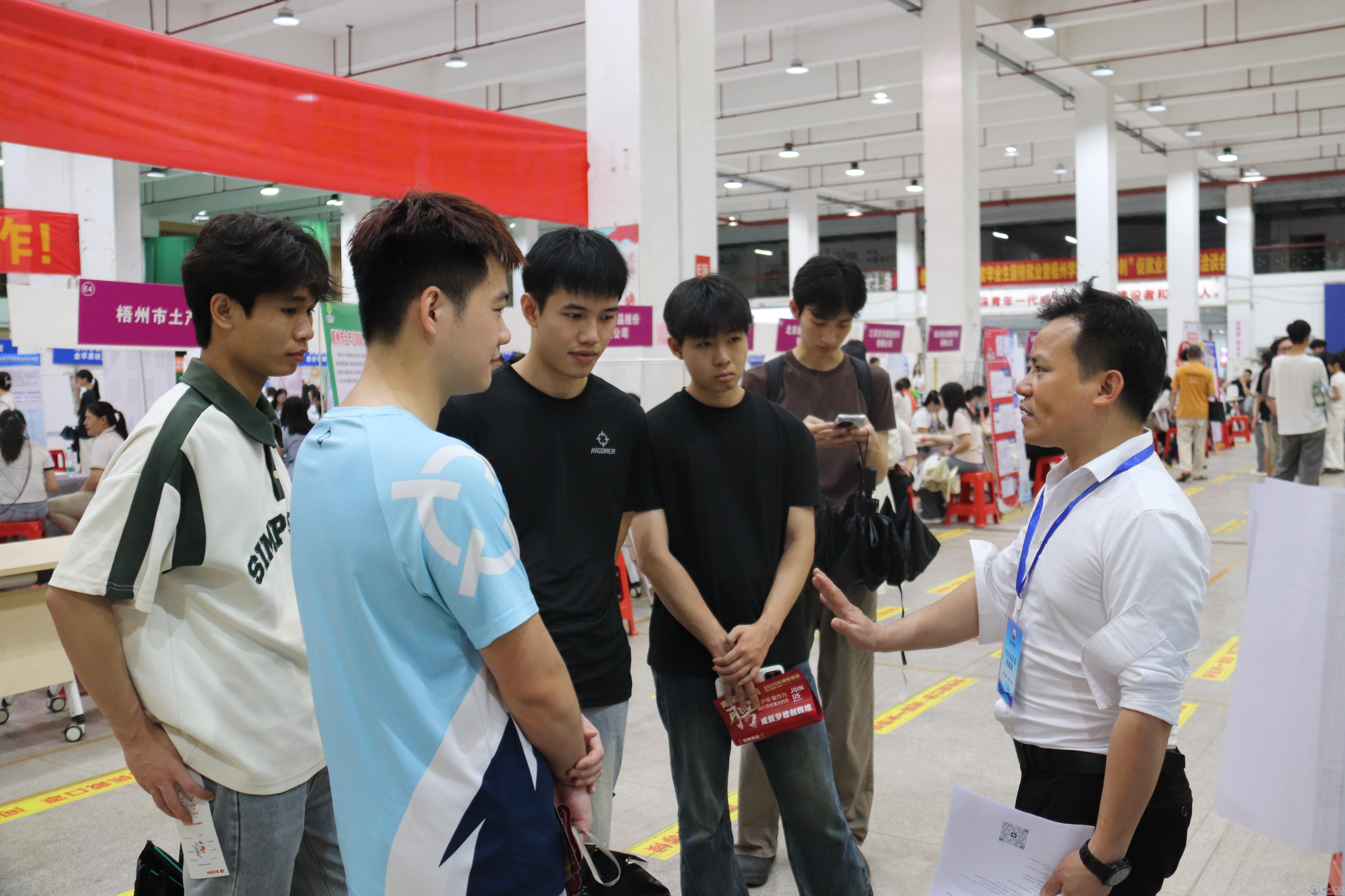 6月15日上午9:00,以“千方百计拓岗位,提速增效促就业”为主题的梧州市2025届高校毕业生留桂就业暨梧州学院“百日冲刺”促就业双向选择洽谈会(以下简称双选会)在我校体育馆室内一楼举办。