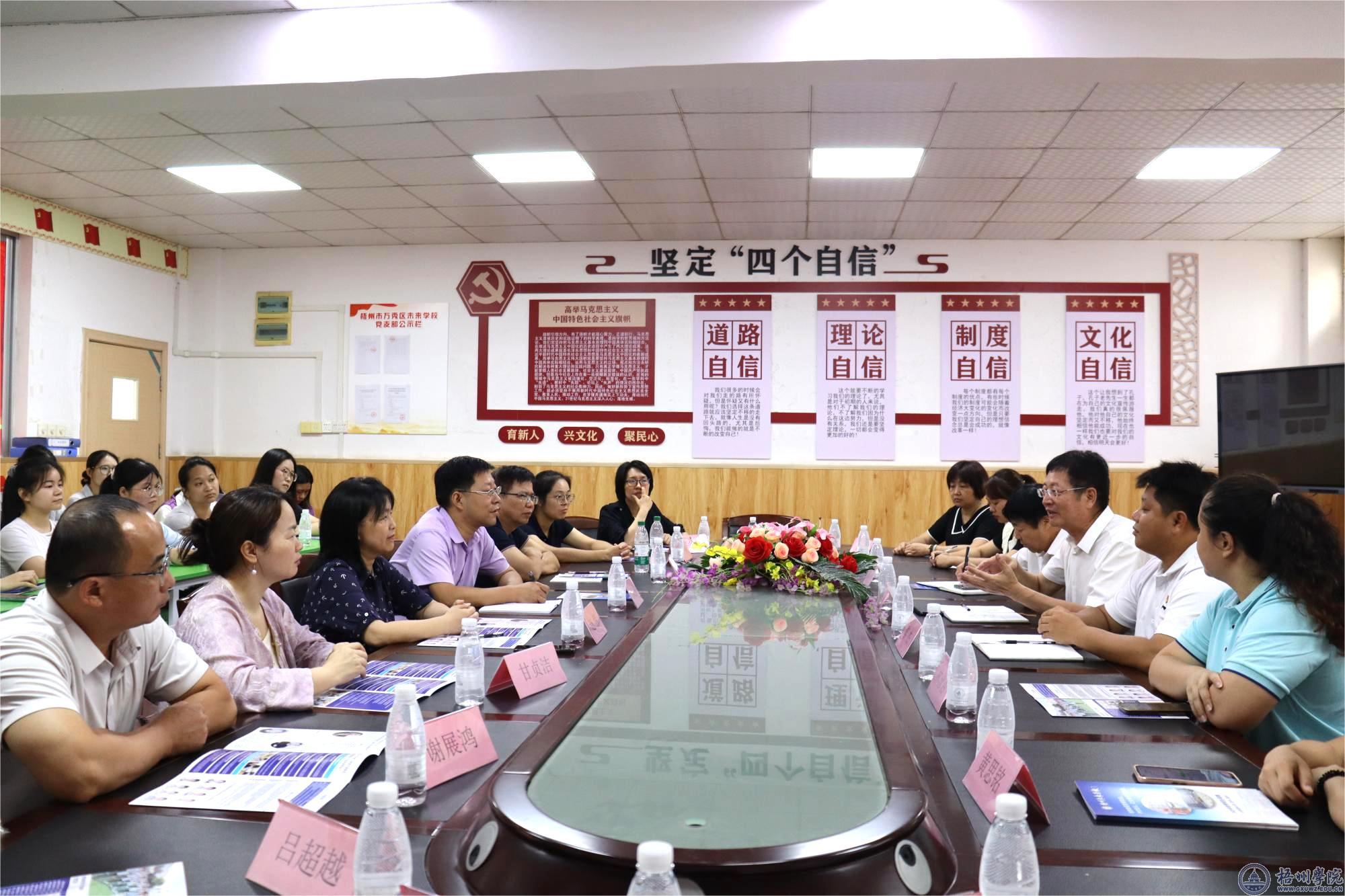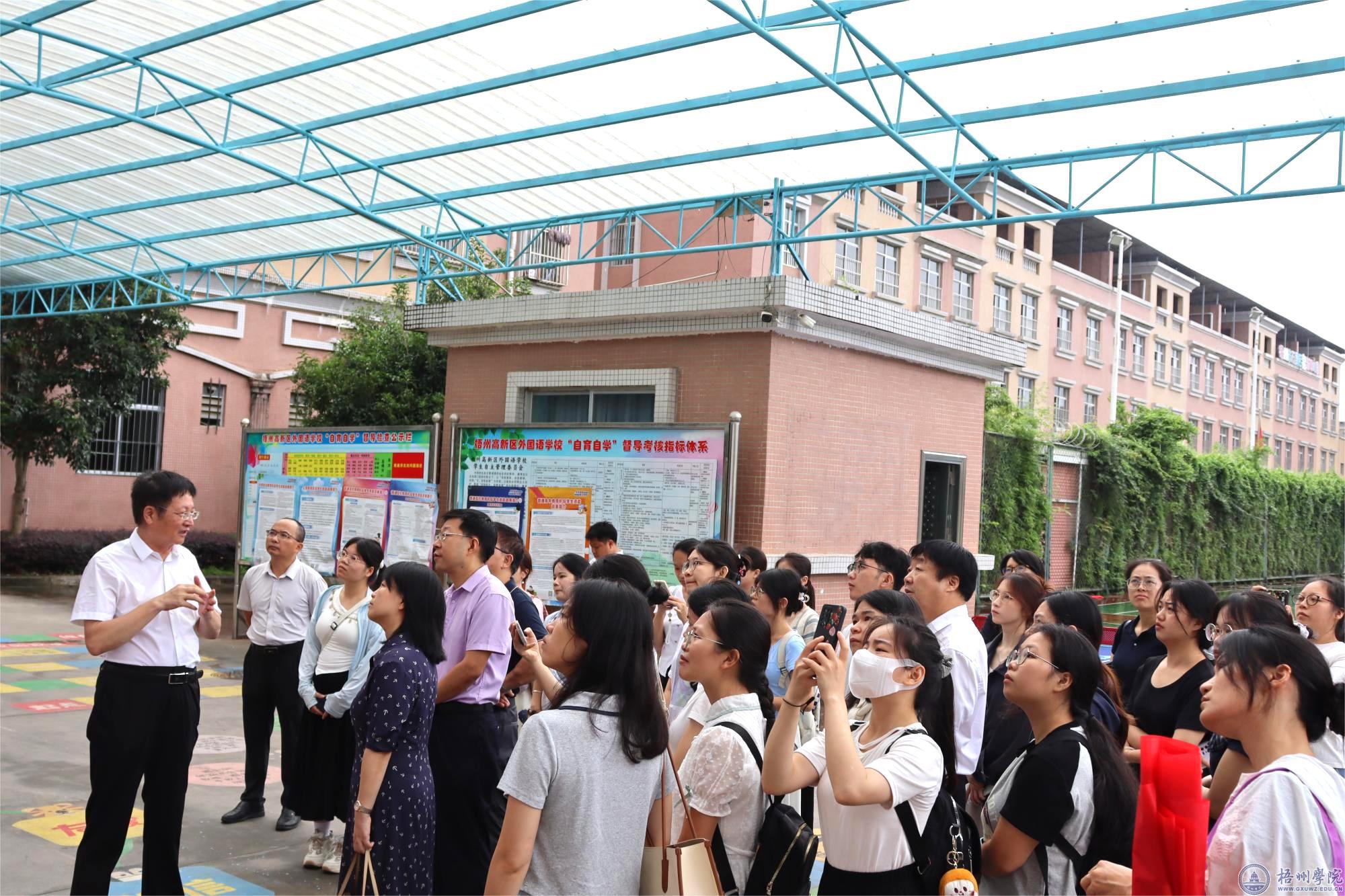 6月18日上午,教师教育学院组织师生赴梧州市万秀区未来学校开展“送生访企促就业”专项活动。学院党委书记姚江波、院长赵伟、小学教育专业教研室教师代表、毕业班辅导员及21、22级学生代表共计33人参加此次活动。