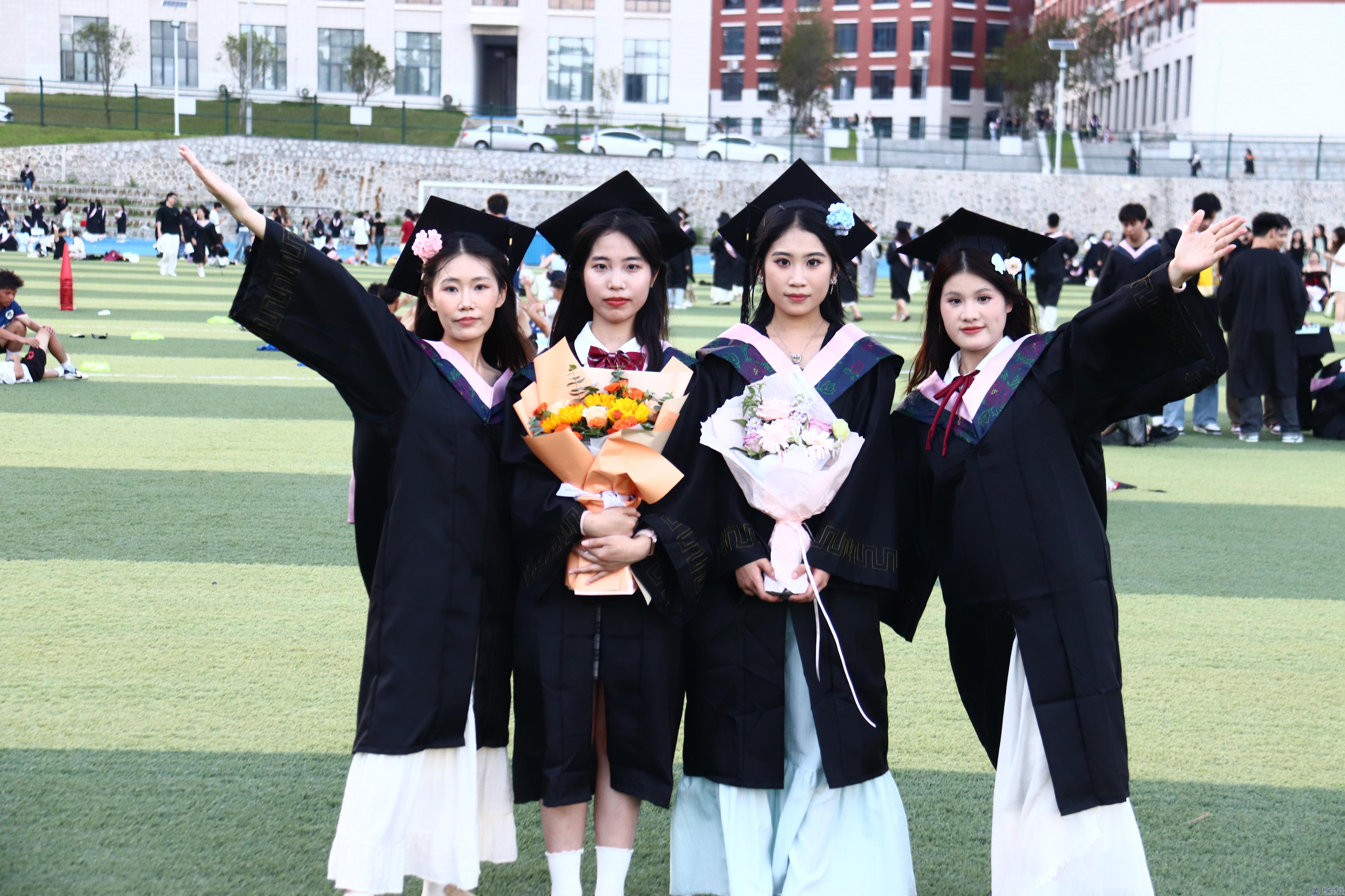 始于金秋,终于盛夏,四年征途,今朝抵达终点。校园长廊、操场、教学楼前,毕业生们身着学士服摆着创意造型,聆听着老师们的亲切叮嘱,此刻,师生情、同窗情变得具象化,在这里的每一个瞬间都是青春的碎片,都将被镜头一一定格。毕业并非终点,而是一场新征程的开端,他们将怀揣着梦想,继续奔赴下一趟山海。