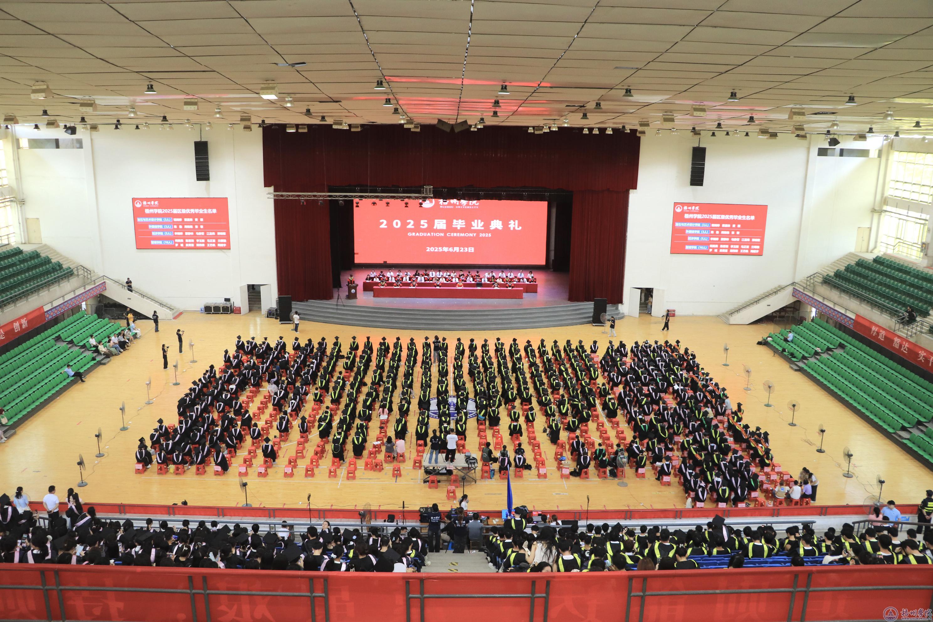 6月23日上午,学校在体育馆三楼主会场举行2025届毕业典礼。学校领导童晓晖、麻新纯、梁业华、范生汝、覃雄彪、莫晨宇、邓小林出席典礼。家长代表、特邀校友代表、学校各职能部门、群团组织和教辅单位主要负责人,各二级学院党政主要负责人、党委副书记、团委书记、毕业班辅导员、班主任、教师代表,以及全体2025届毕业生齐聚一堂,共同见证2025届学子顺利毕业的时刻。典礼由学校党委副书记梁业华主持。