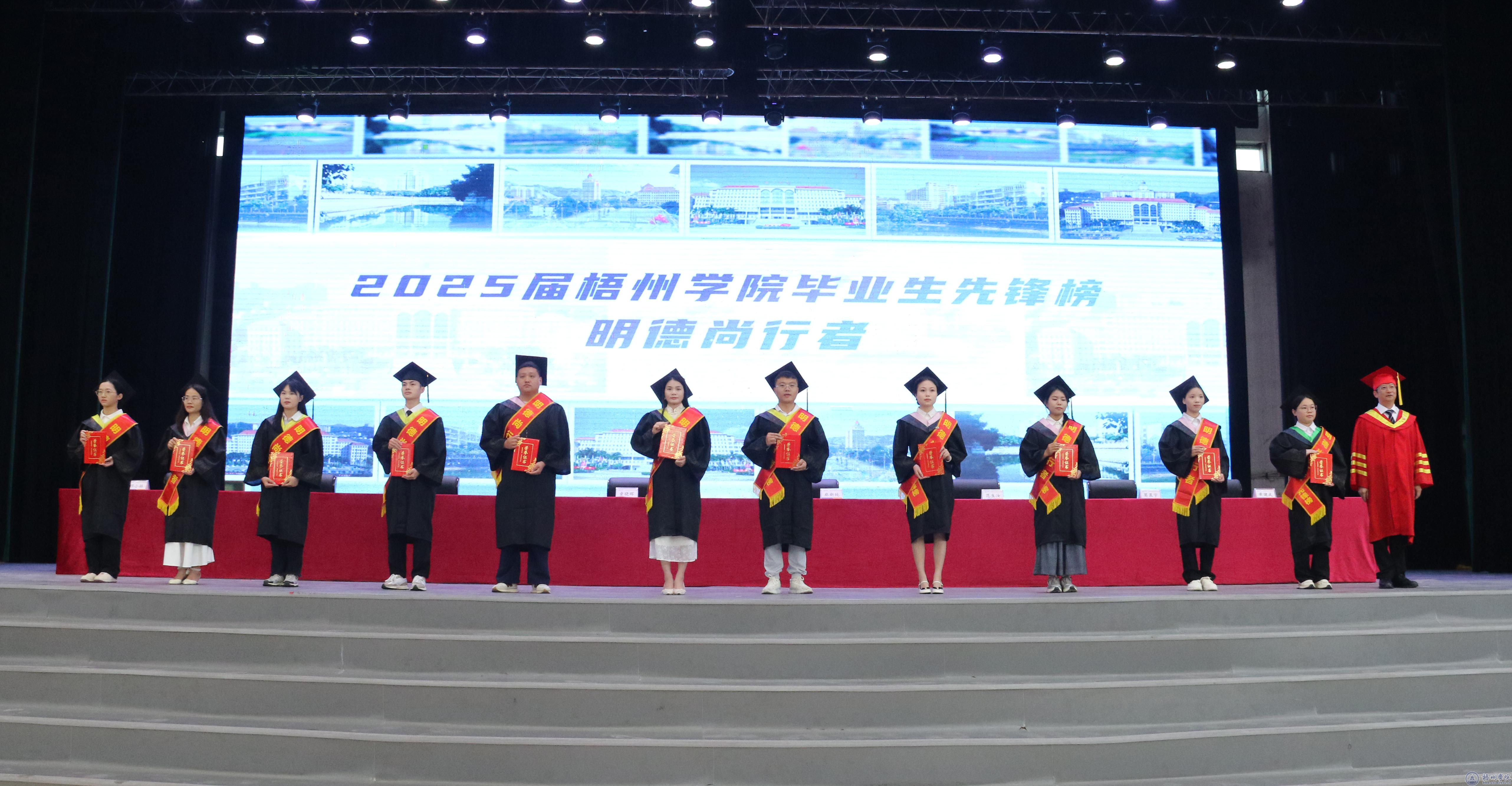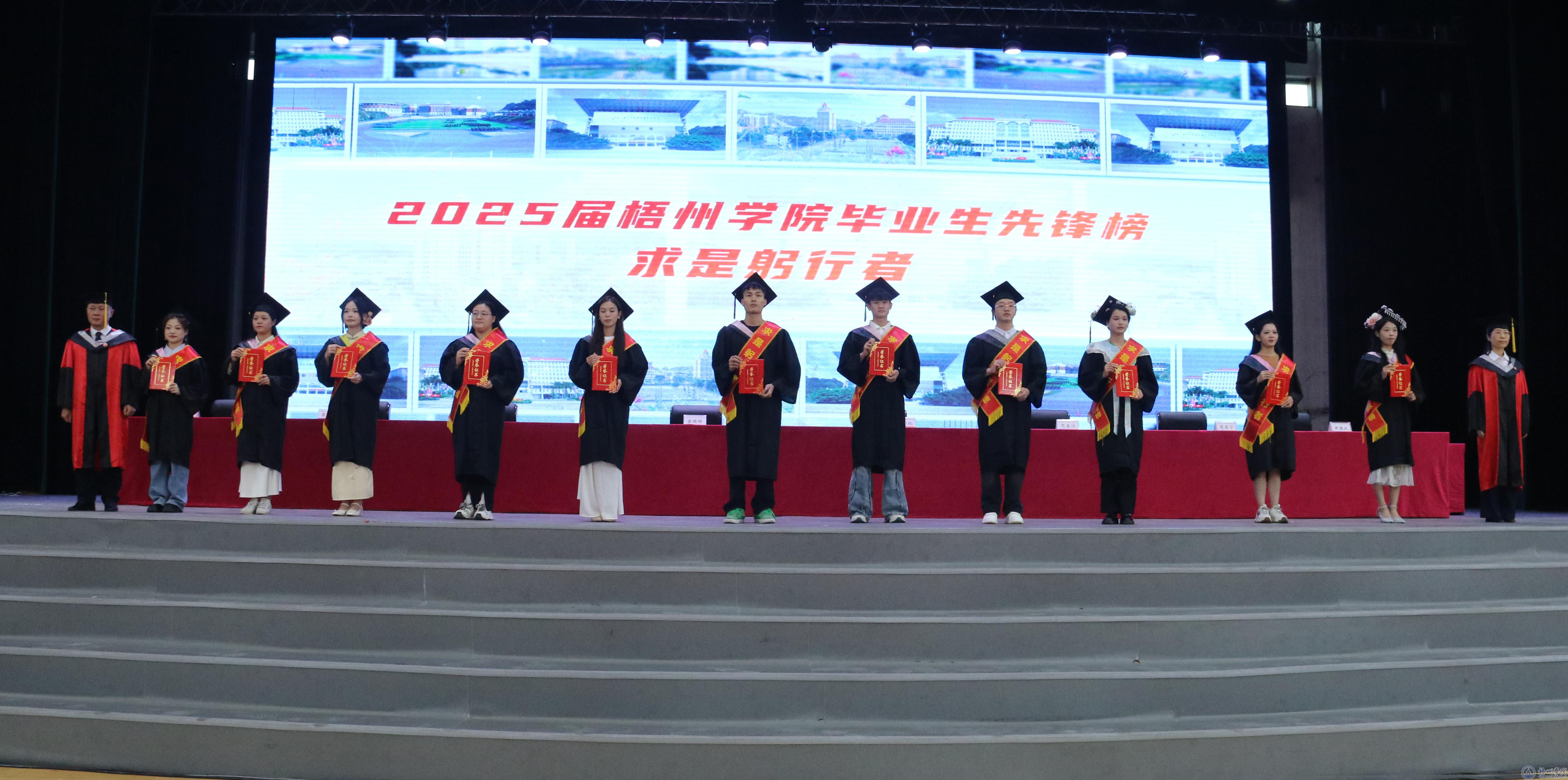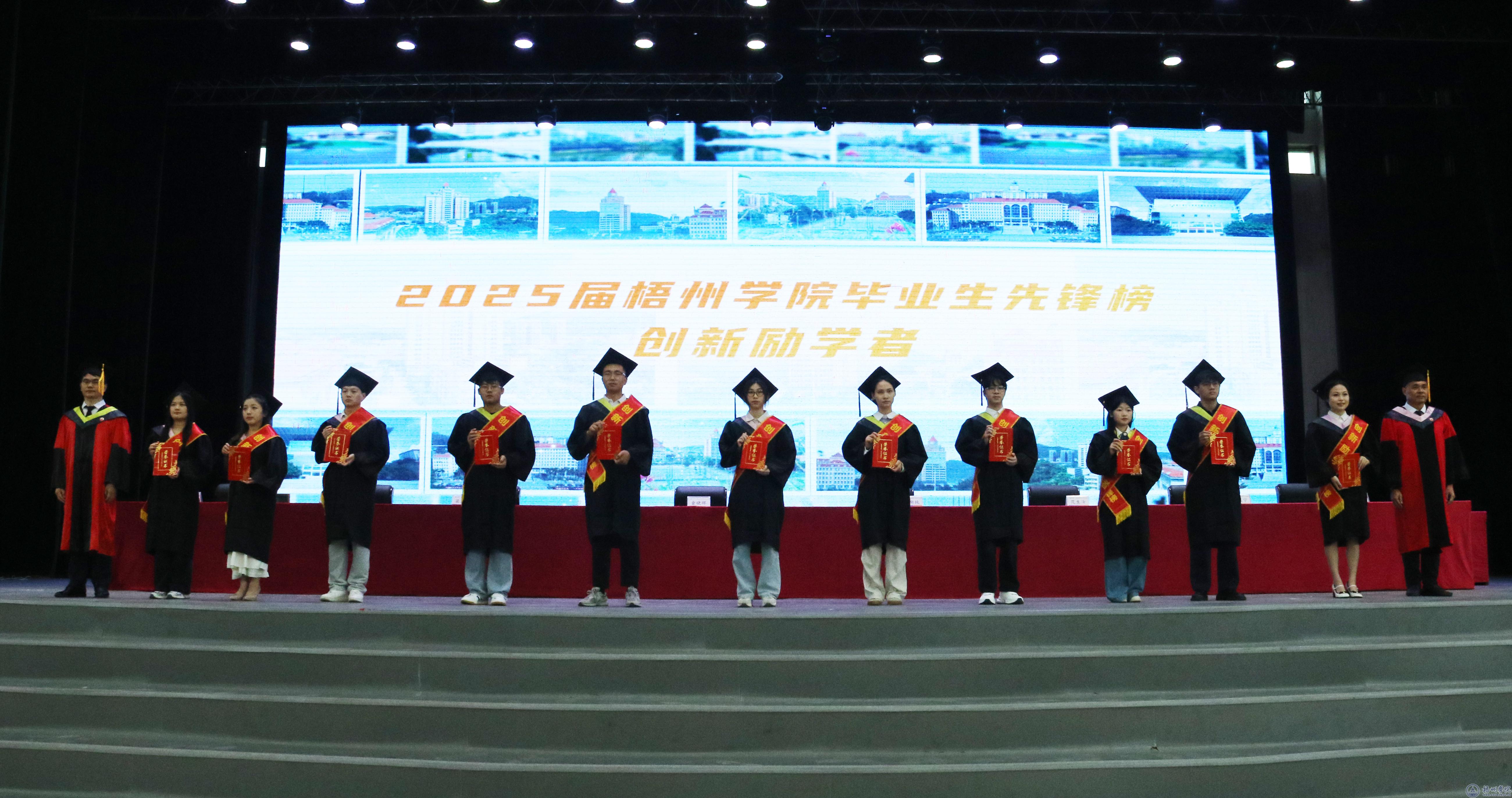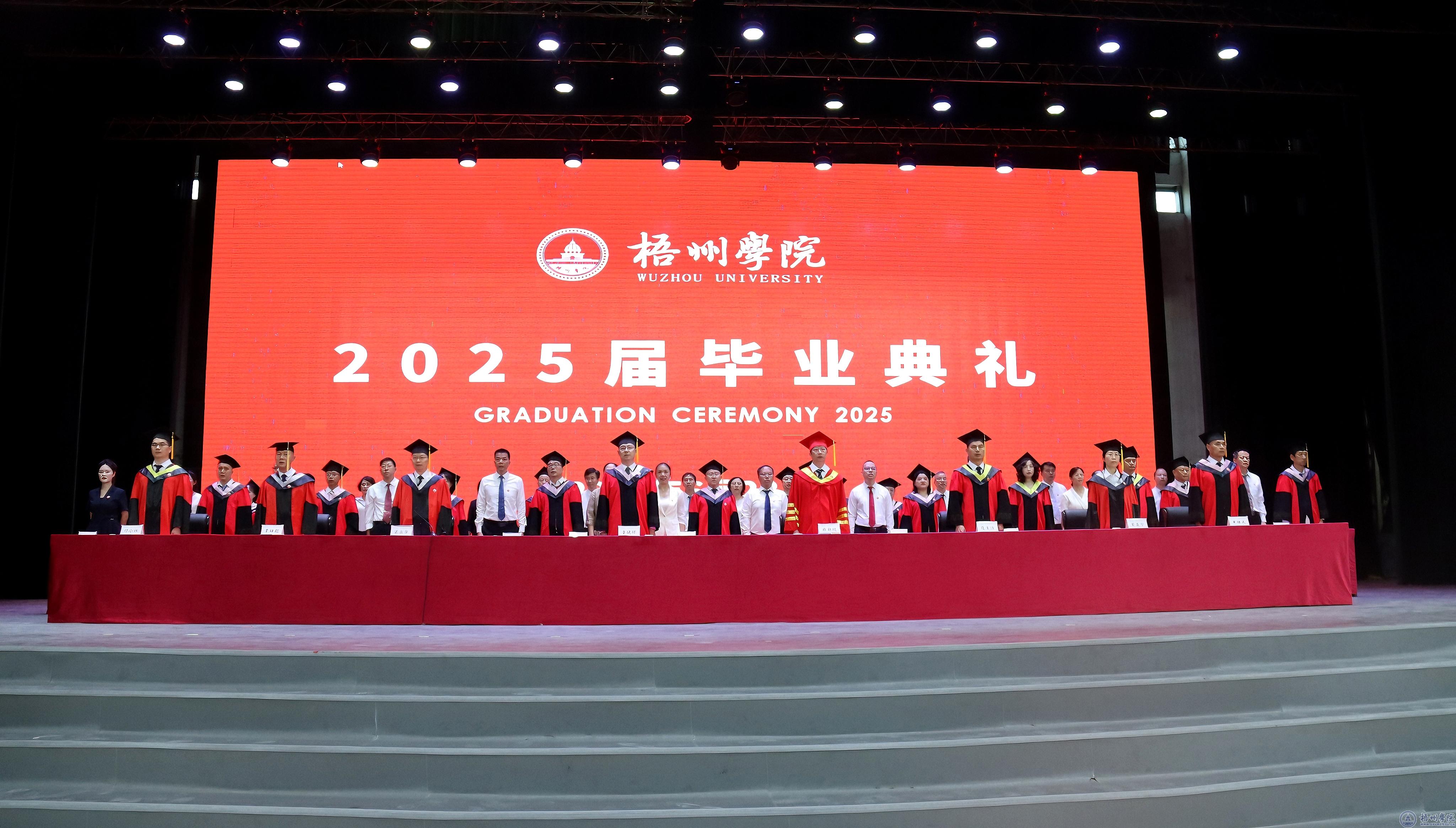 典礼现场,在校师生代表、辅导员代表、梧州校友会代表、毕业生代表深情演绎了《岁月神偷》《篇章》《入海》《你是》《再见》等曲目,用深情动人的歌声话别校园岁月,以昂扬奋进的旋律并肩共赴星辰大海。