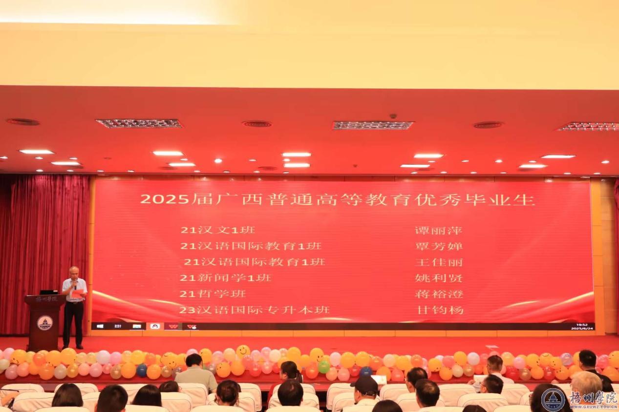 6月24日晚,文学与传媒学院“文苑之声——拾光筑梦 跃向新程”2025届毕业生系列活动在明理楼一楼学术报告厅举行。学院领导班子、全体教师、校友陆羽翔、2025届毕业生及在校学生代表参加活动。