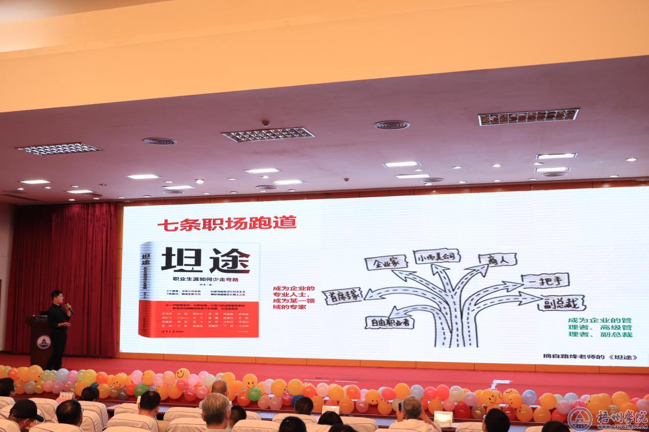 在“职引未来 赋能启航”就业能力提升推进会上,优秀校友陆羽翔结合自身十年人力资源行业经验,带来《用10年构建自己核心竞争力》主题分享,从专业技能打磨、人脉拓展、持续学习等方面为同学们提供宝贵的职业发展建议。最后,学院党委书记梁宏云讲话,鼓励同学们积极就业、勇于创新,在不同岗位上实现自身价值。