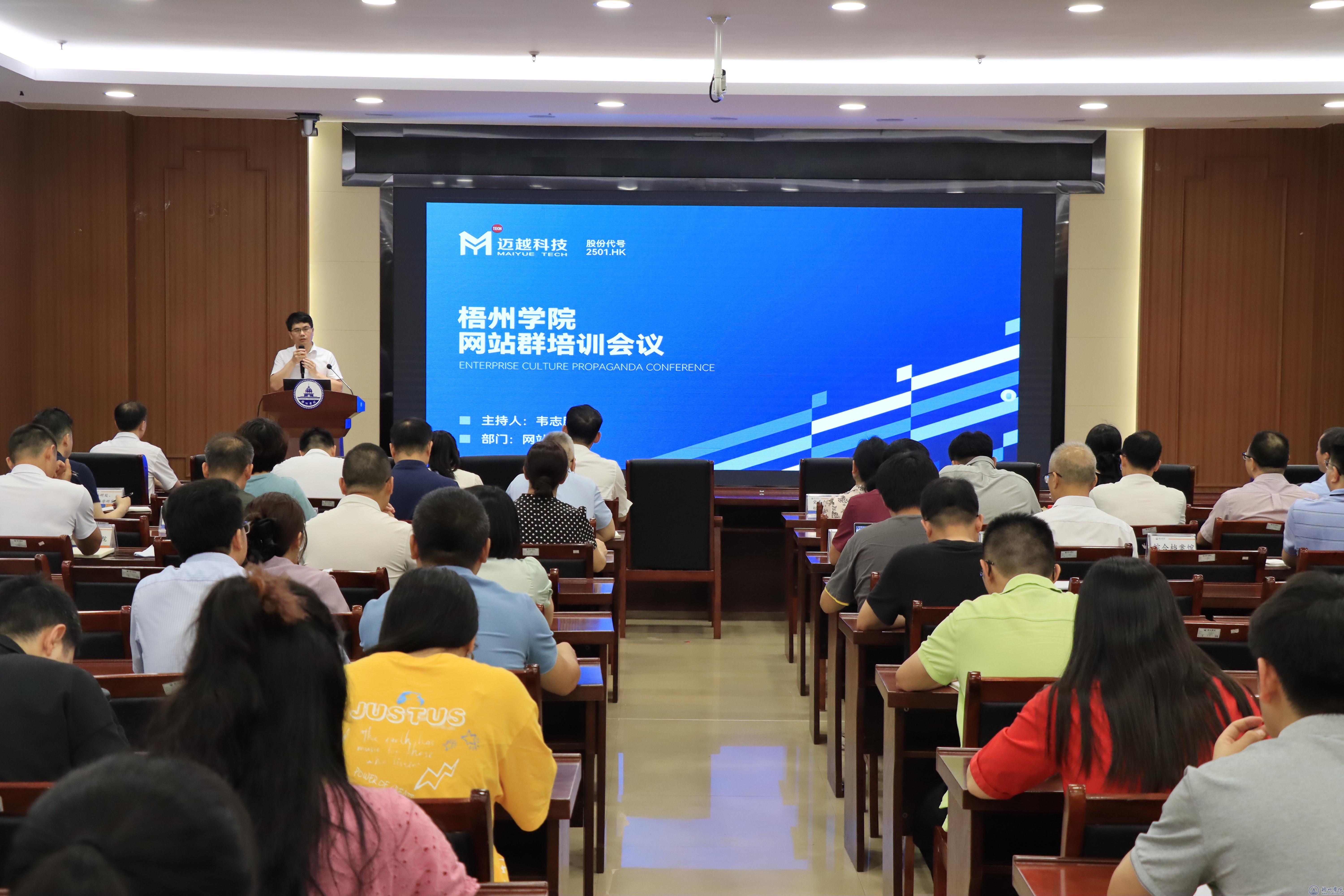 6月25日下午,学校在明科楼一楼报告厅召开网站群培训会议,学校党委常委、副校长邓小林出席会议,各二级单位主要负责人、各二级网站新闻审核员、管理员,南宁市迈越软件有限责任公司技术人员参加会议。