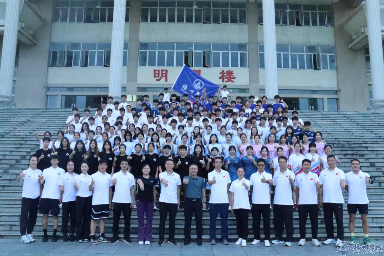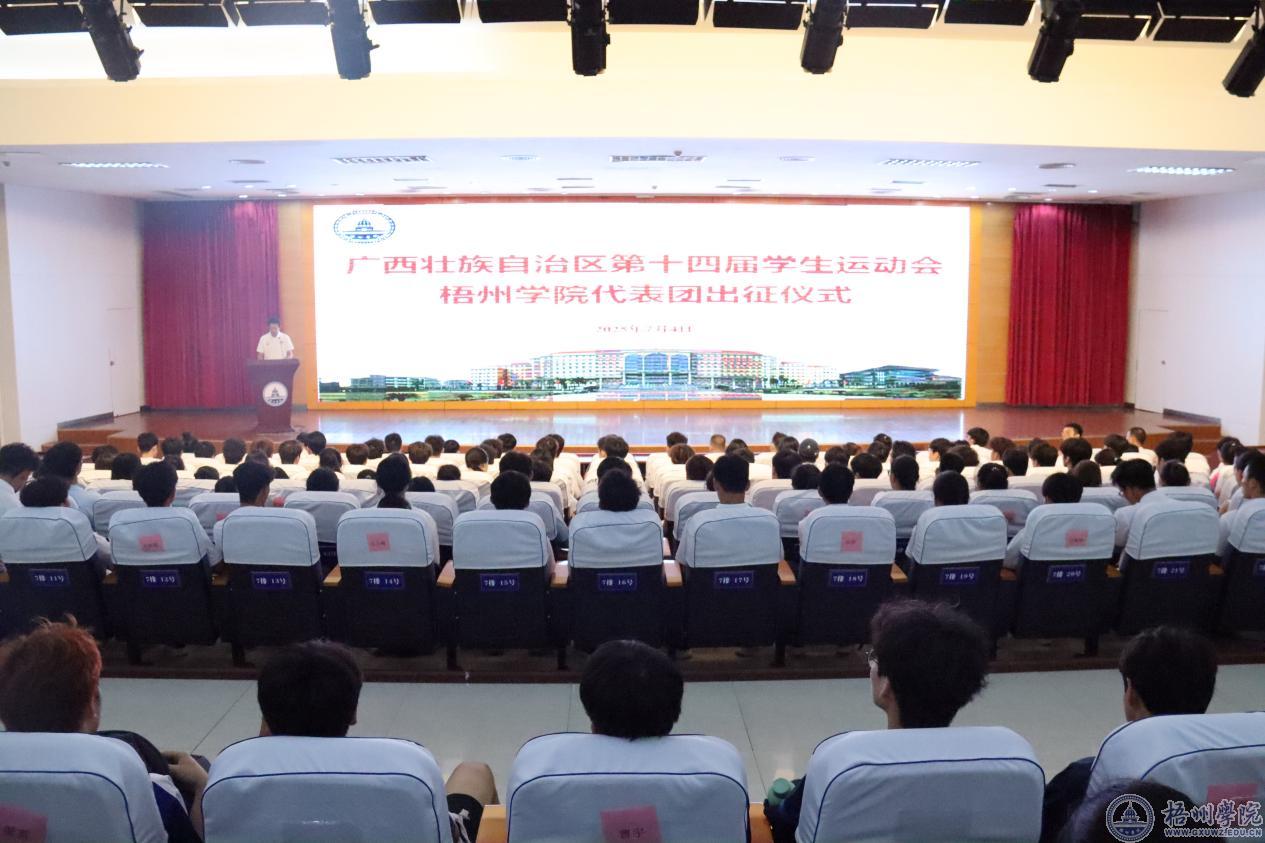 7月4日下午,我校在明理楼学术报告厅举行广西壮族自治区第十四届学生运动会梧州学院代表团出征仪式。副校长覃雄彪作为代表团团长出席仪式并作动员讲话。体育健康学院班子成员、教练员代表、运动员参加出征仪式。