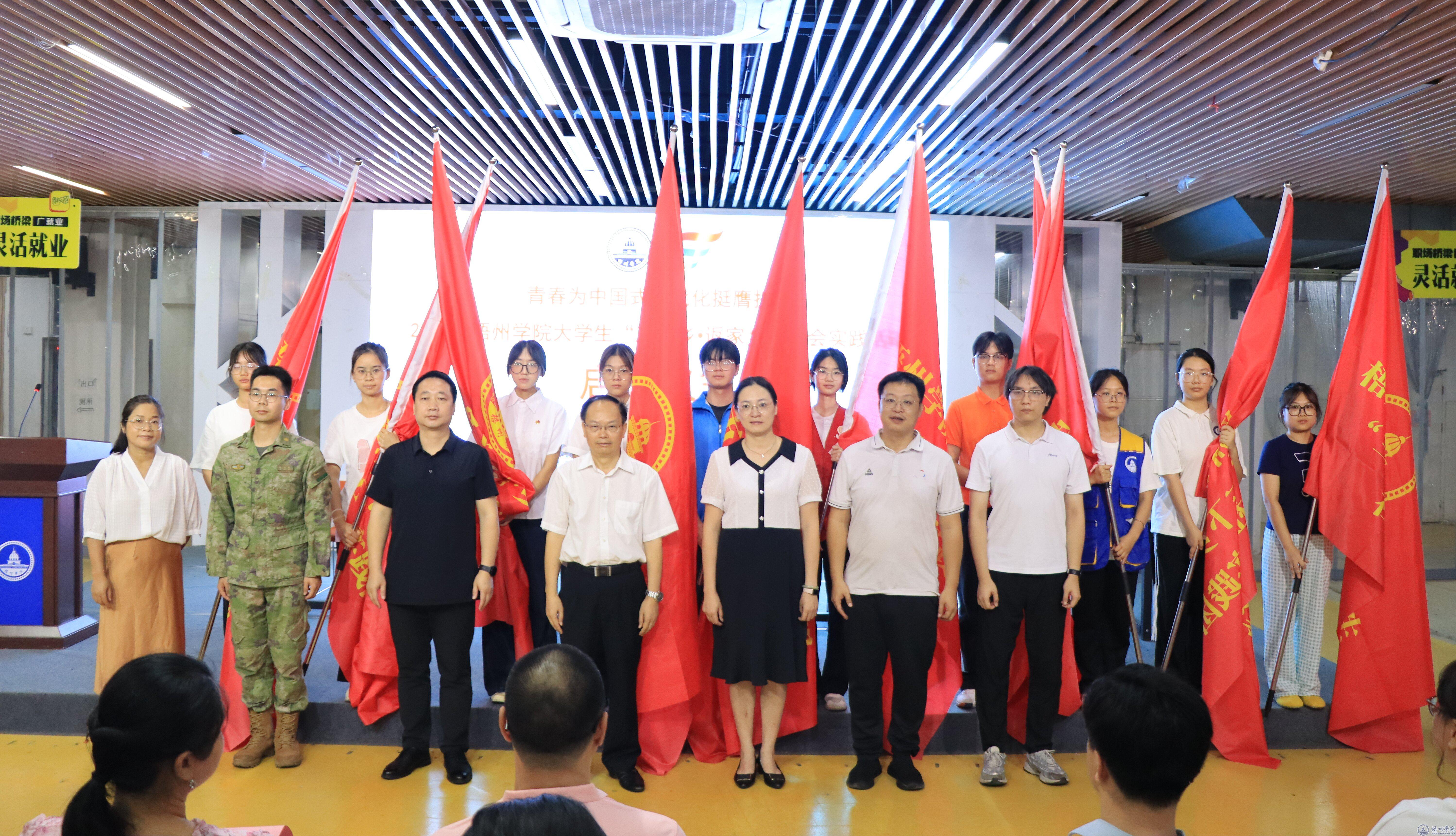7月7日,2025年梧州大学生暑期“三下乡”出征暨“返家乡”社会实践上岗仪式在学校体育馆举行。校党委副书记梁业华出席启动仪式,团市委、学校相关职能部门、各二级学院相关单位负责人,100余名师生代表参加启动仪式。