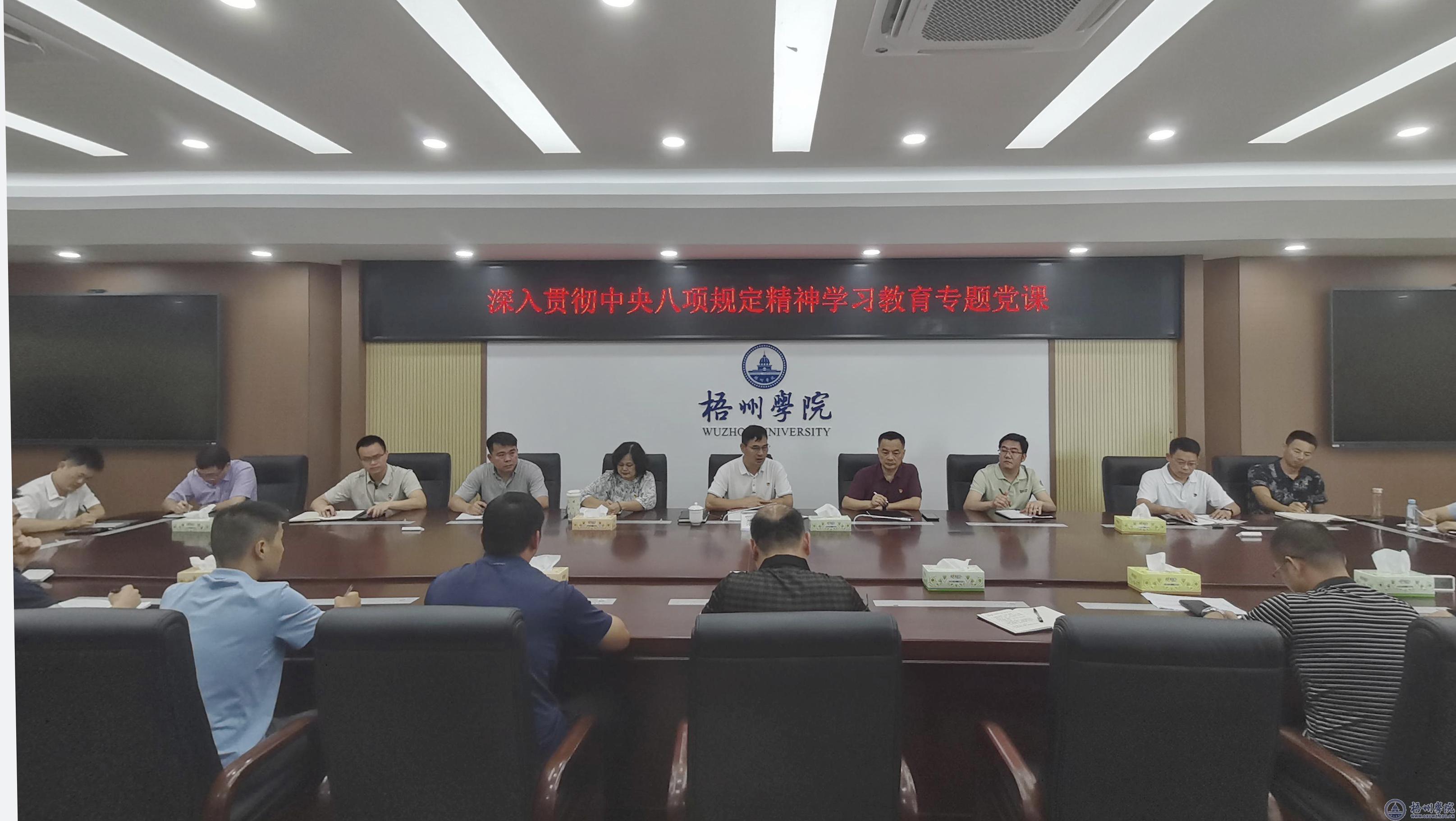 7月7日上午,学校党委常委、副校长范生汝在明理楼八楼会议室为分管部门党员、干部讲授深入贯彻中央八项规定精神学习教育专题党课。