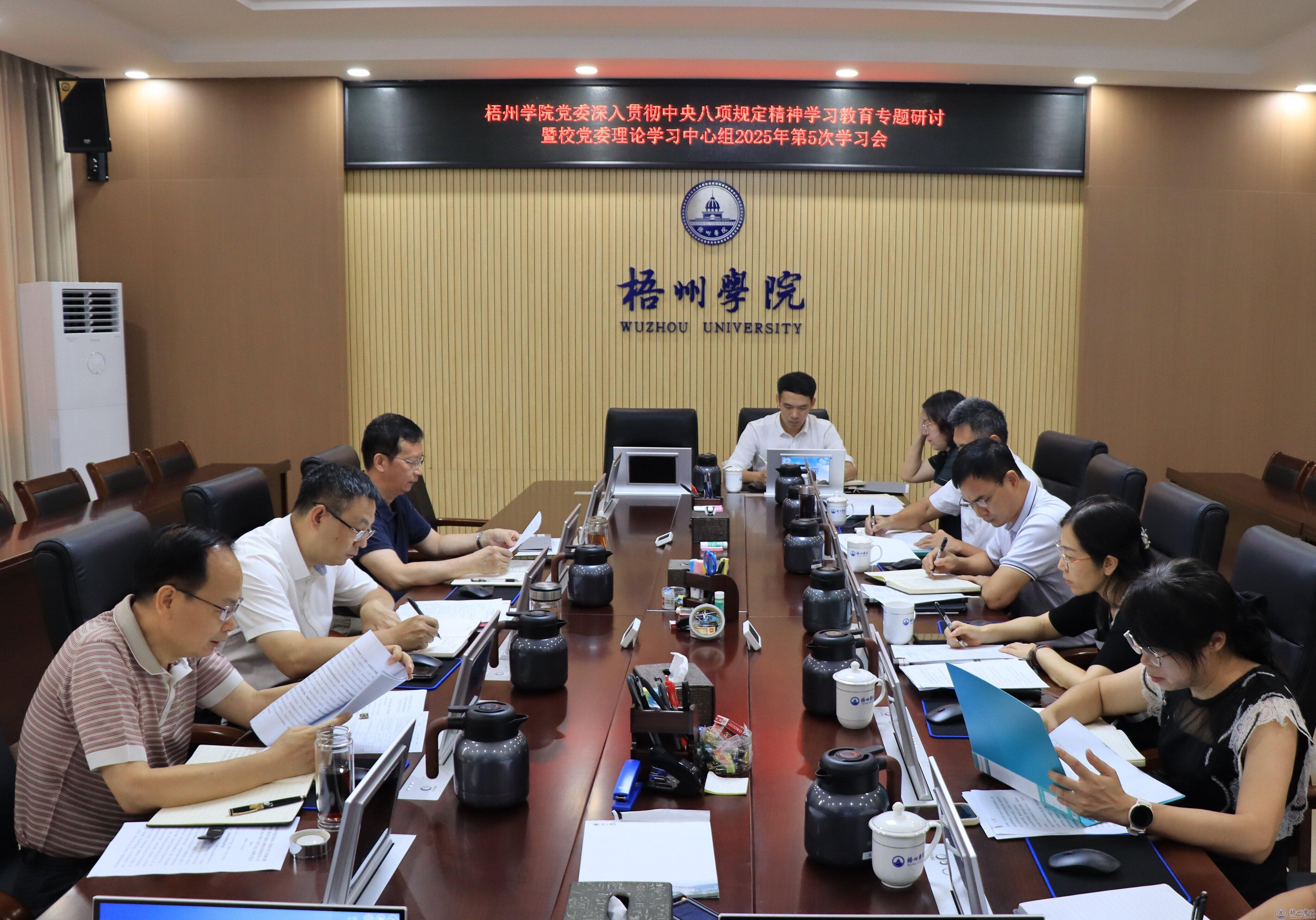 7月18日,学校党委在明理楼8楼第2会议室召开深入贯彻中央八项规定精神学习教育专题研讨暨校党委理论学习中心组2025年第5次学习会。深入学习贯彻习近平总书记重要讲话精神,落实“五个进一步到位”要求,传达自治区层面深入贯彻中央八项规定精神学习教育工作专班近期下发的有关文件精神,认真贯彻落实自治区层面深入贯彻中央八项规定精神学习教育工作专班关于违反中央八项规定精神典型问题的通报精神,并开展交流研讨。全体校领导,学校党委常委参加会议。会议由校党委书记童晓晖主持。