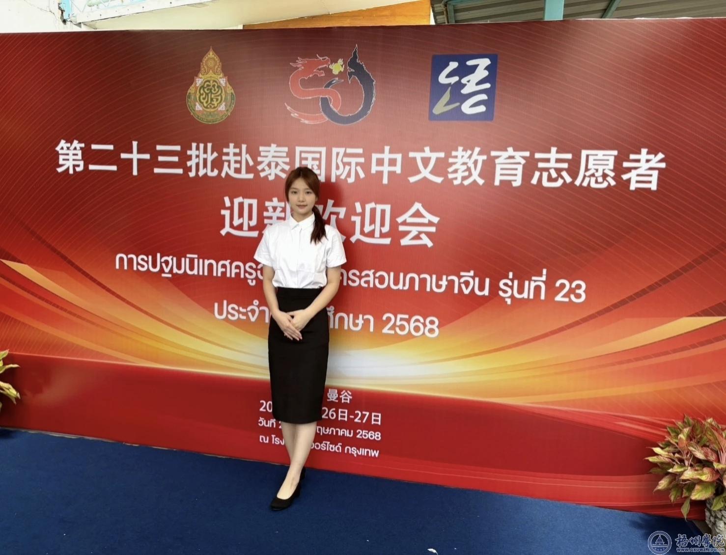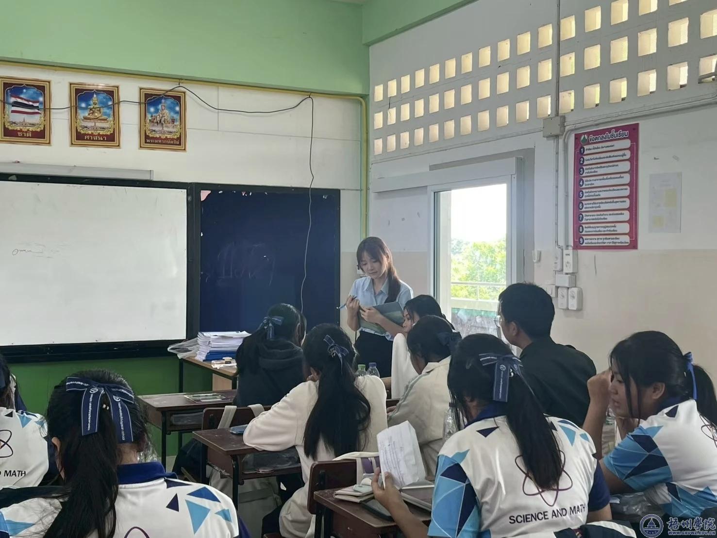 在大一,一个偶然的契机下,王佳丽了解到教育部中外语言交流合作中心的国际中文教育志愿者项目,当时的她还没有这个想法,但随着学习的深入,逐渐喜欢上了这个专业,同时也被许多志愿者的事迹所感动,更明白了这个身份的使命是向世界传播中华文化。于是,在大四上学期的考研之际,她坚定的报考了语合25赴泰志愿者项目,并且顺利通过了面试与培训,在5月下旬完成了外派,如今的她正在泰国的一所中学教中文。“在这的每一天都是对我的挑战,但我会坚持下去的!”王佳丽说道。