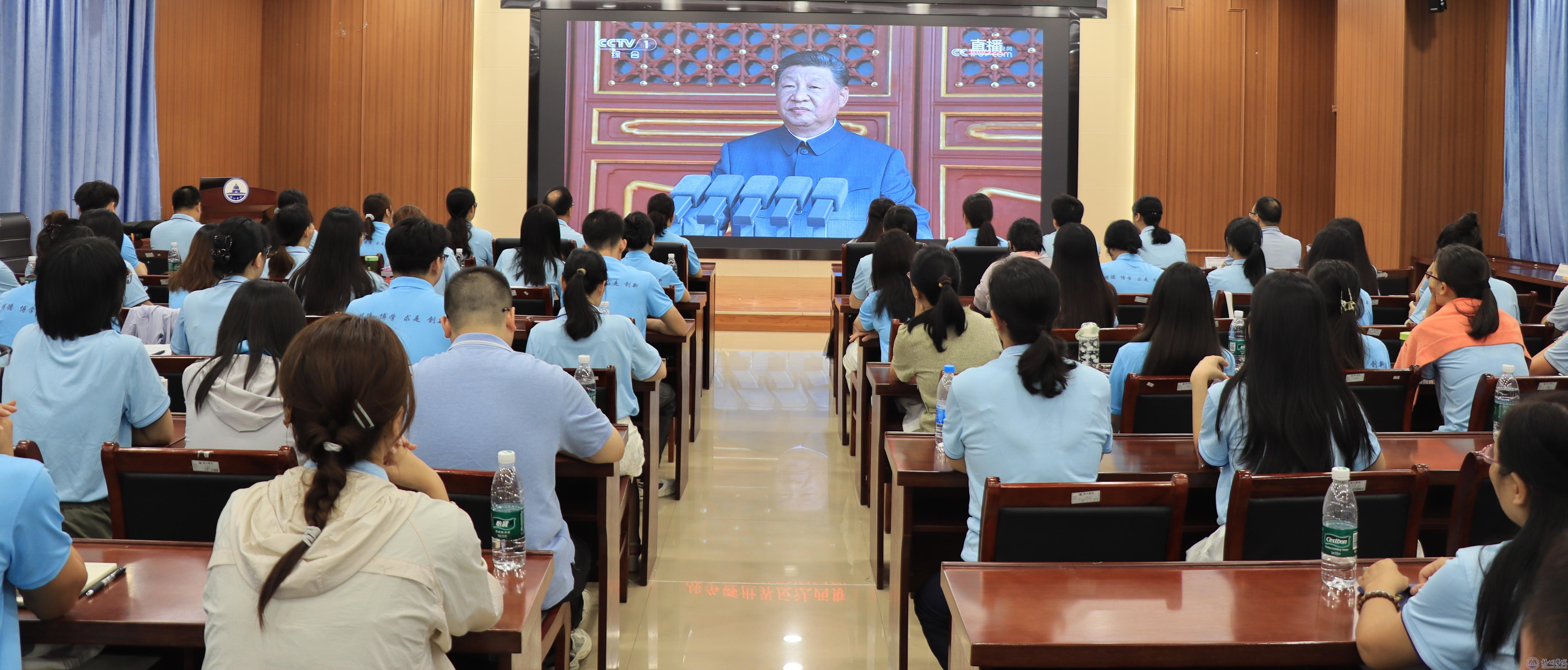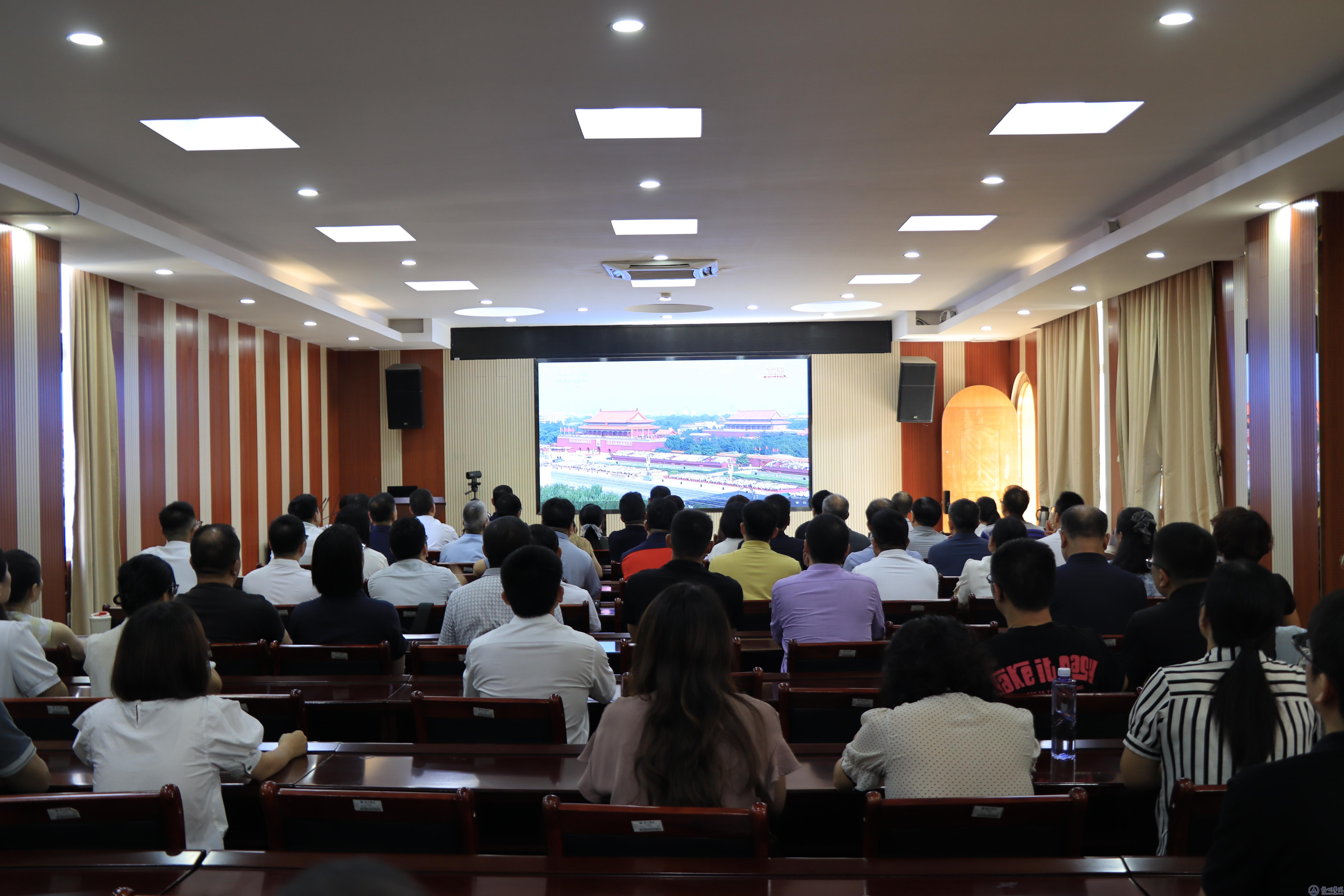 9月3日上午,纪念中国人民抗日战争暨世界反法西斯战争胜利80周年大会在北京天安门广场隆重举行,中共中央总书记、国家主席、中央军委主席习近平发表重要讲话并检阅受阅部队。学校组织师生代表在明理楼七楼视频会议、明科楼学术报告厅认真收听收看,学校党委书记童晓晖,副校长覃雄彪、范生汝、莫晨宇到场收看。广大师生员工通过电视、网络等多渠道收听收看大会实况,深入学习习近平总书记重要讲话精神,共同见证庄严时刻,铭记历史、缅怀先烈,珍爱和平、开创未来。